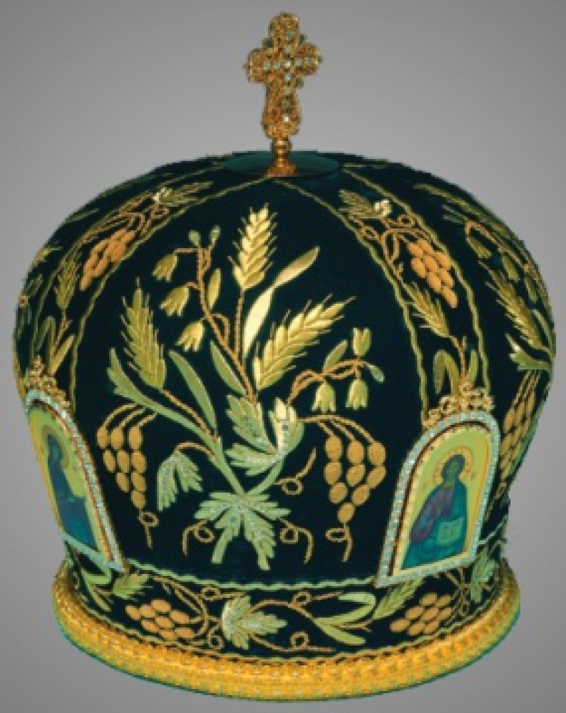Митра с ручной вышивкой, выполнена из натурального немецкого бархата.