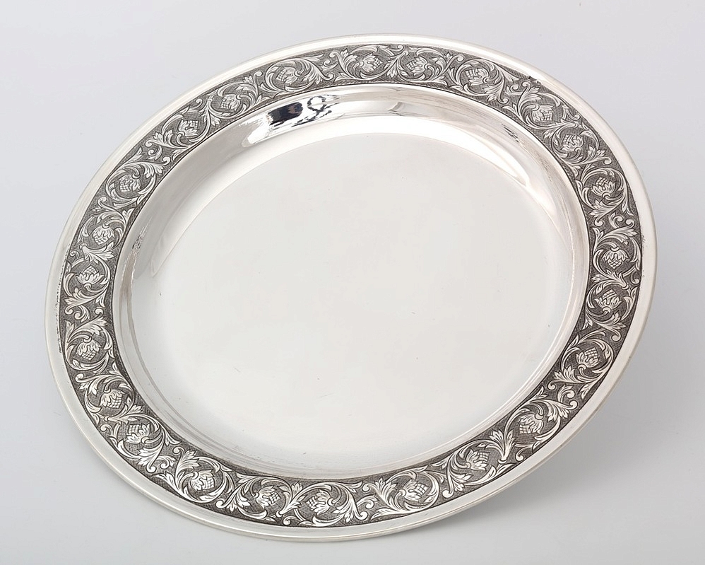Набор / блюдо -ф240мм+ 2 ковша / ручная гравировка серебро (УИН)