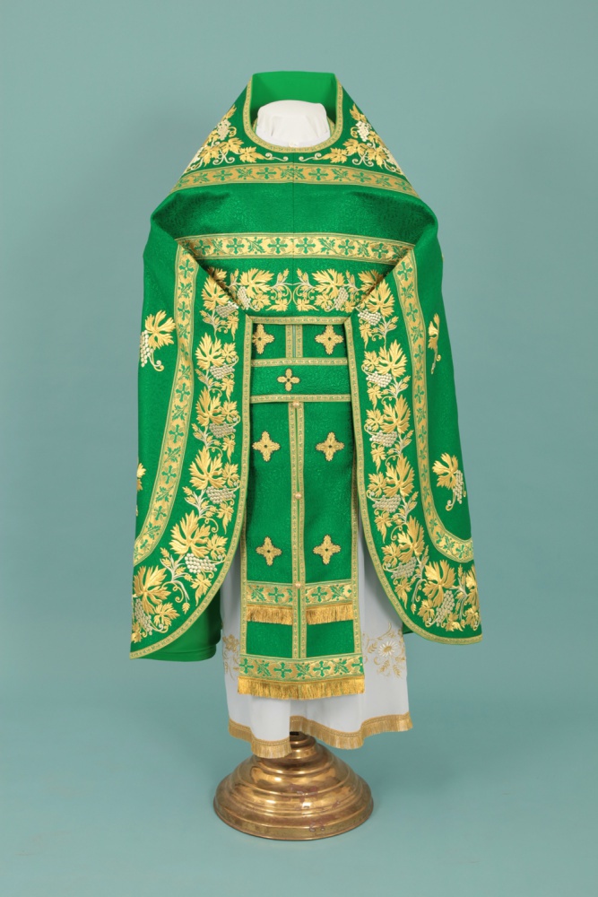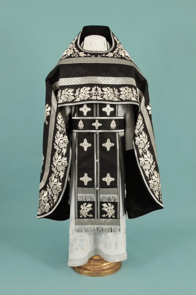 В комплект входит: фелонь, епитрахиль, поручи, пояс, набедренник, палица.