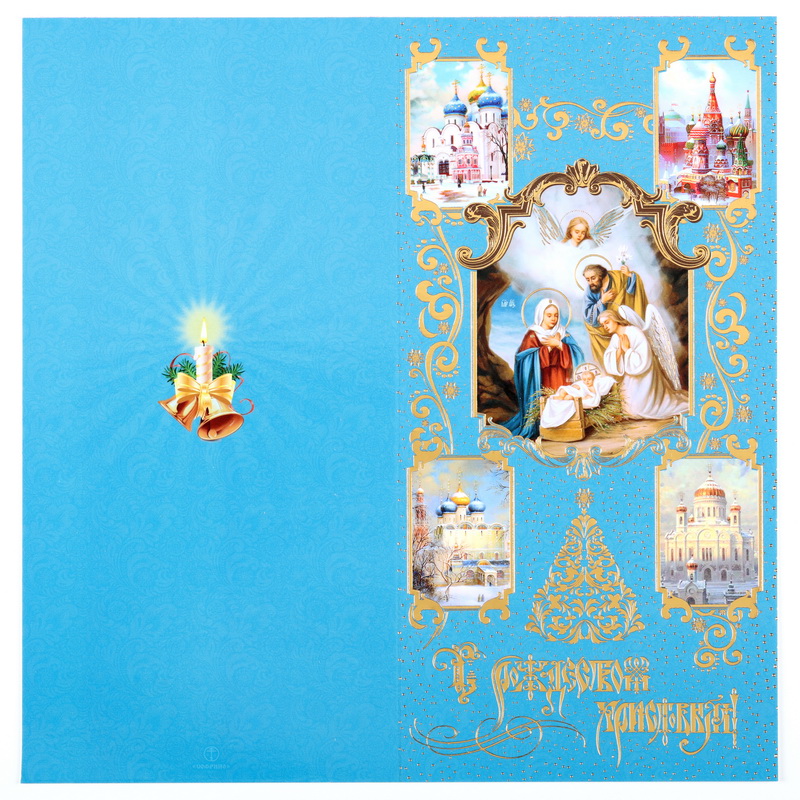 Открытка церковная двойная среднего формата 4+0 тиснение "Рождество Христово" №52