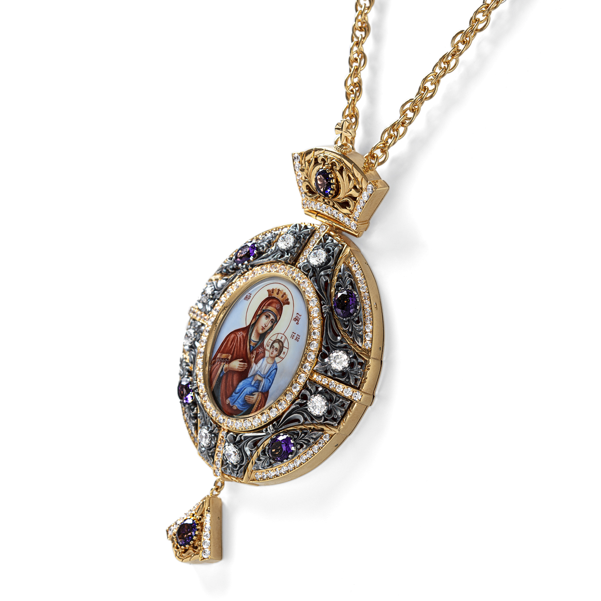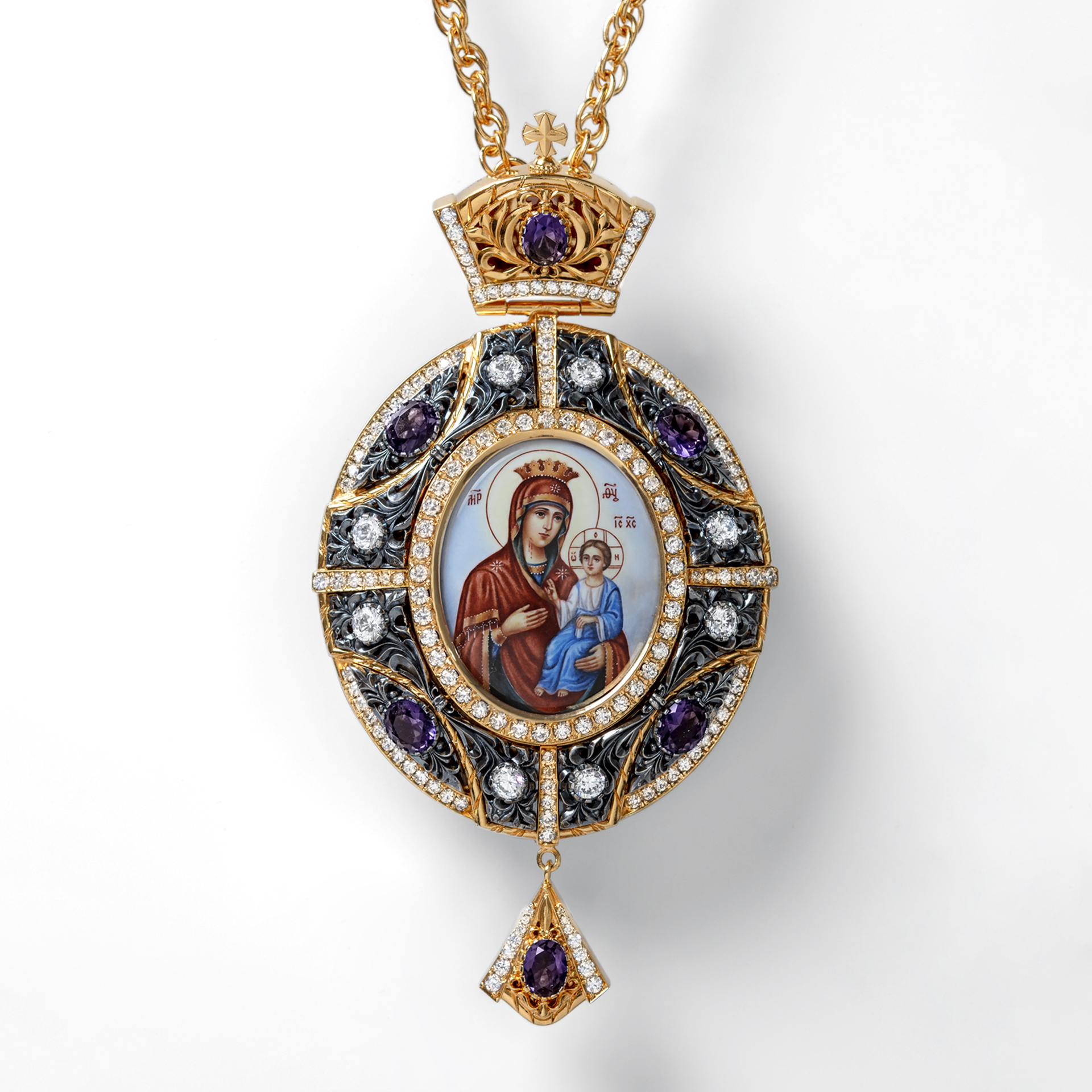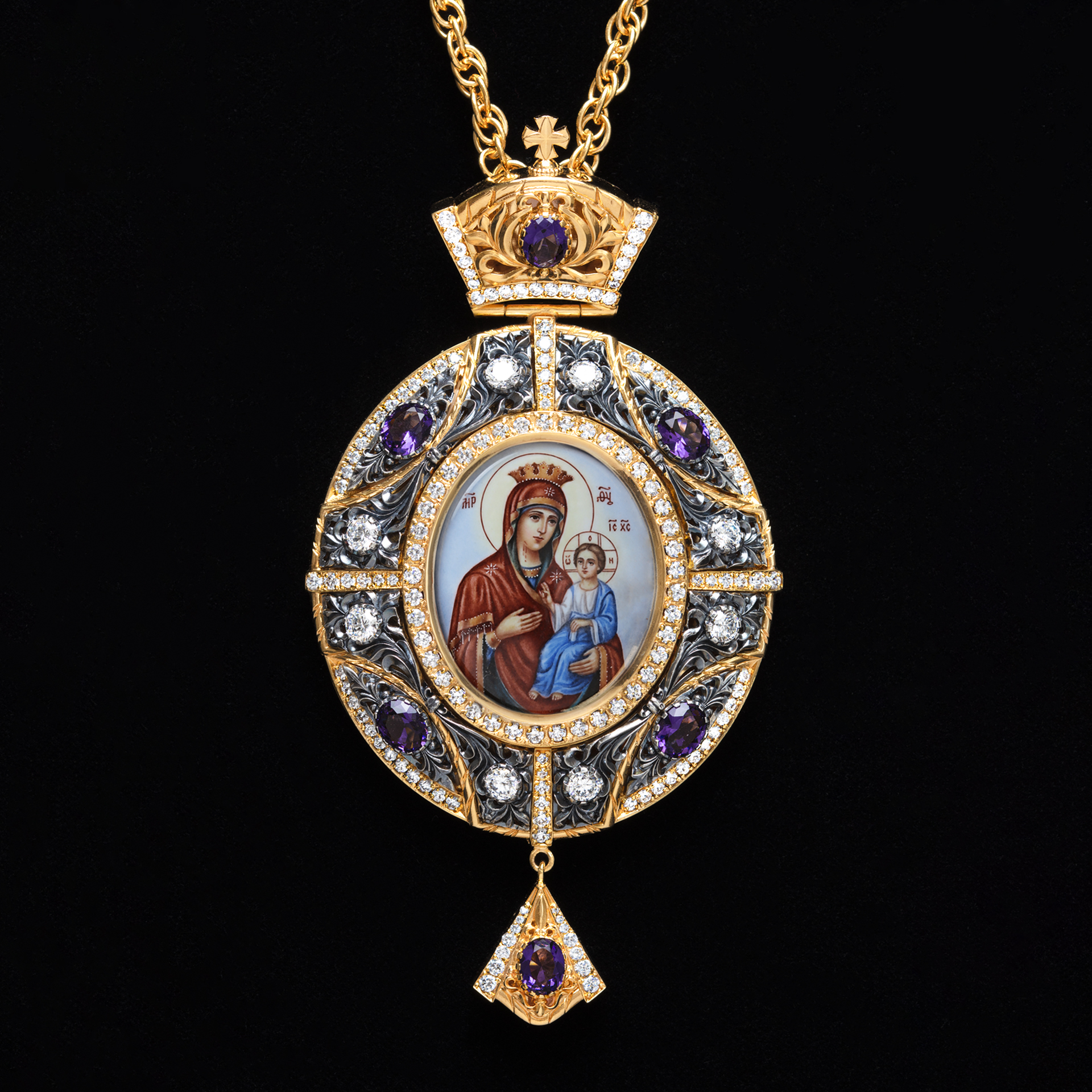 Панагия №101 / Фианиты / золочение, серебрение / Иверская БМ
