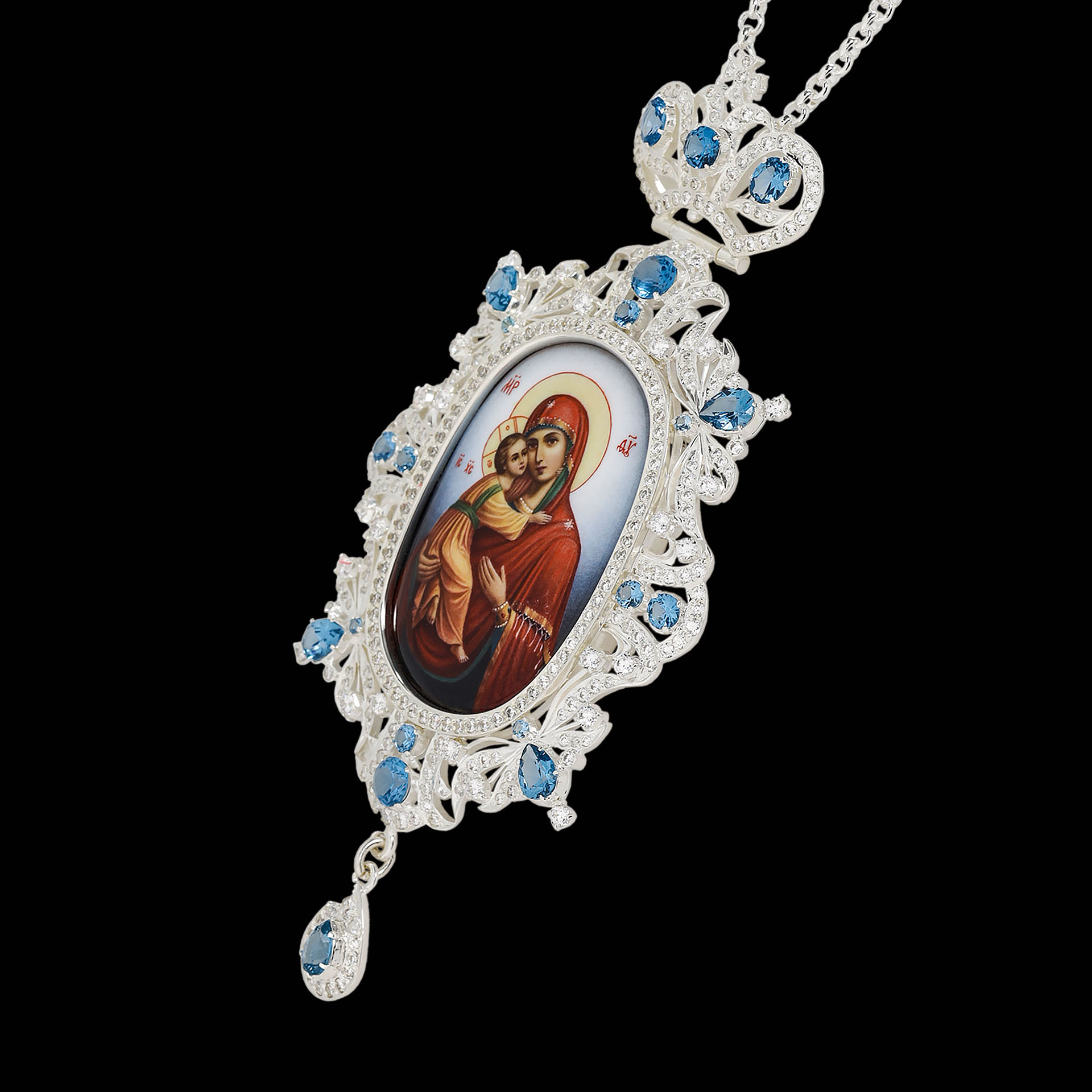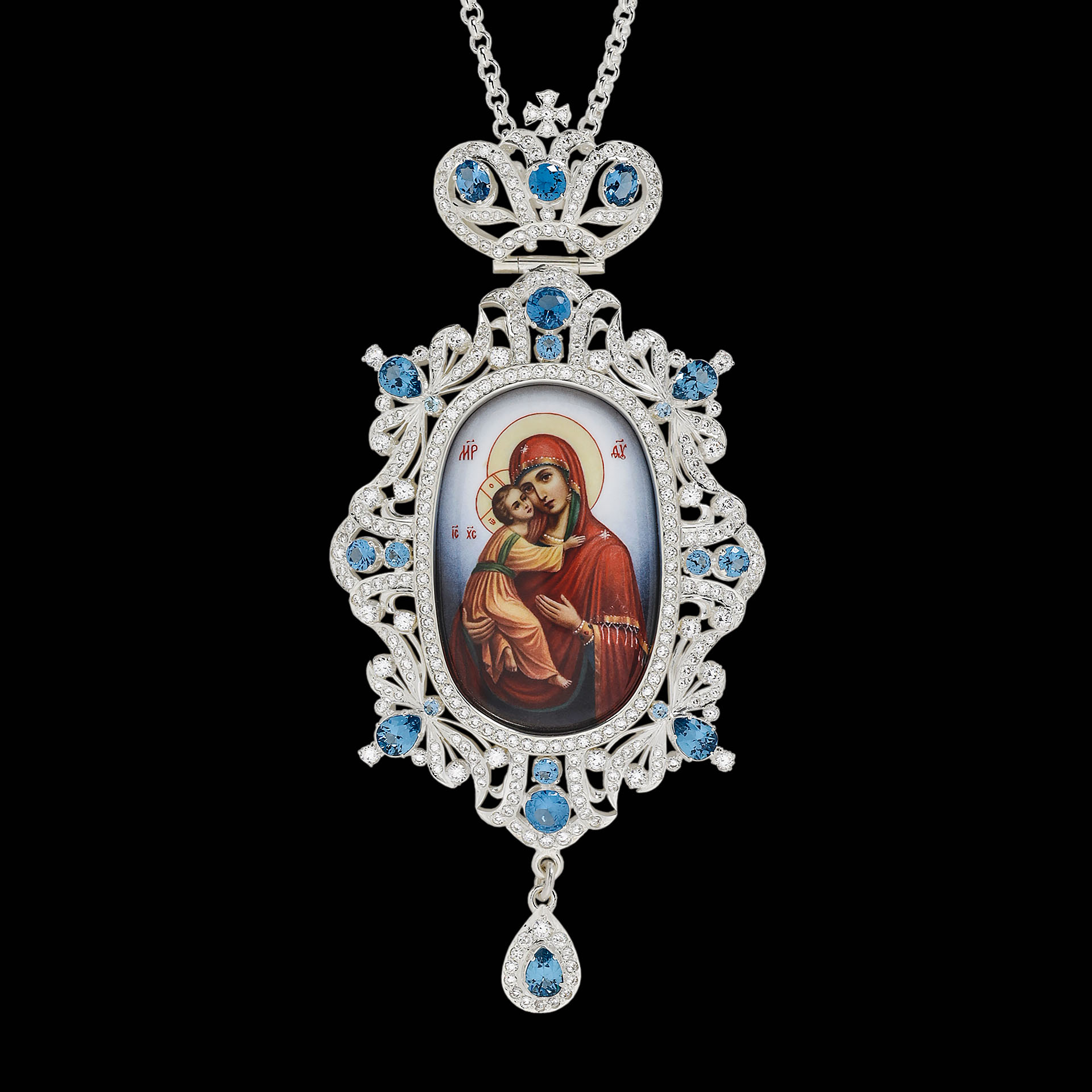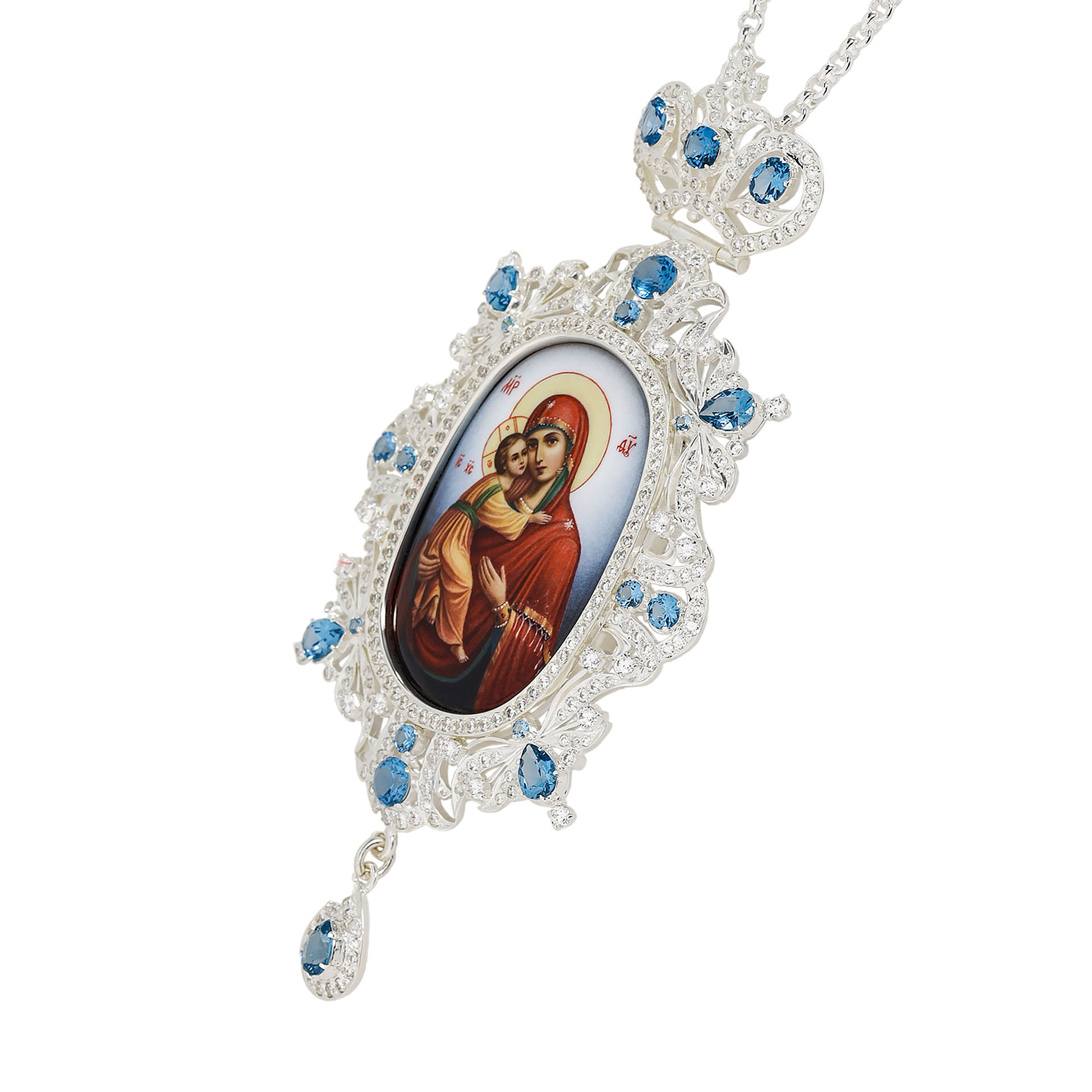 Панагия №210 / Фианиты деколь / серебрение / Владимирская БМ