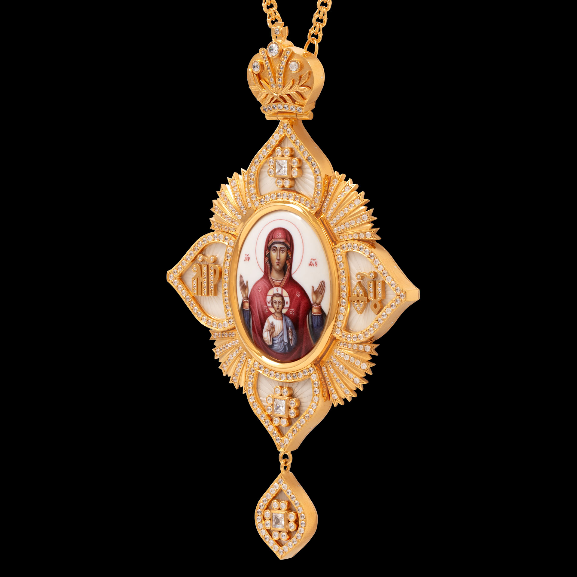 Панагия №230 / Фианиты финифть, эмаль / золочение / серебро (УИН)