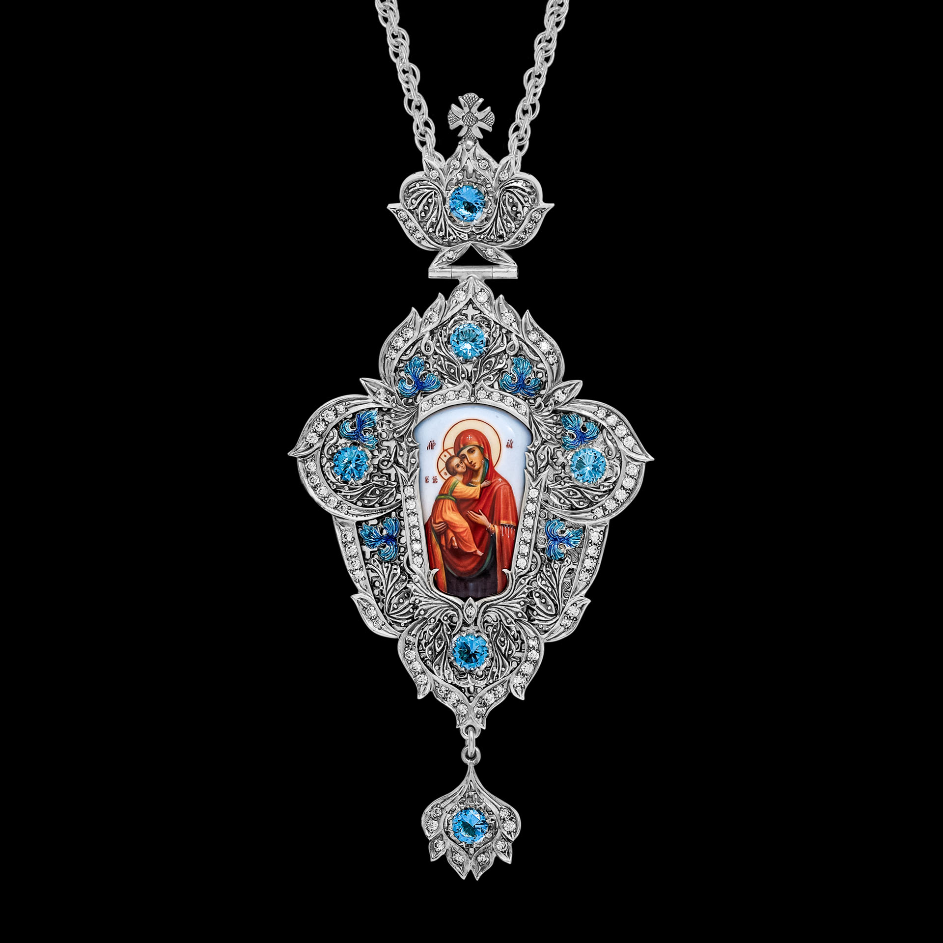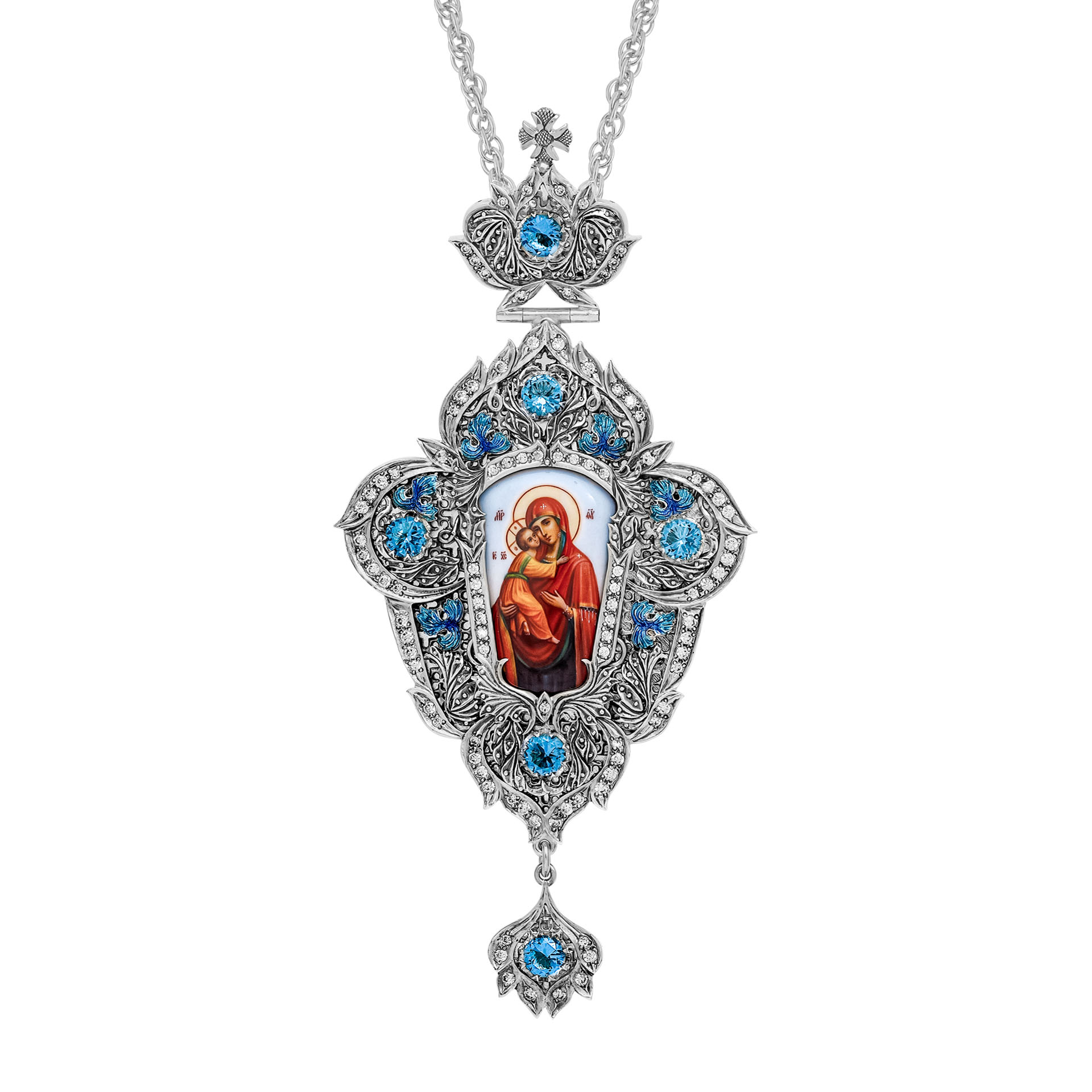 Панагия №7 / Фианиты, деколь, эмаль / серебрение / Владимирская БМ