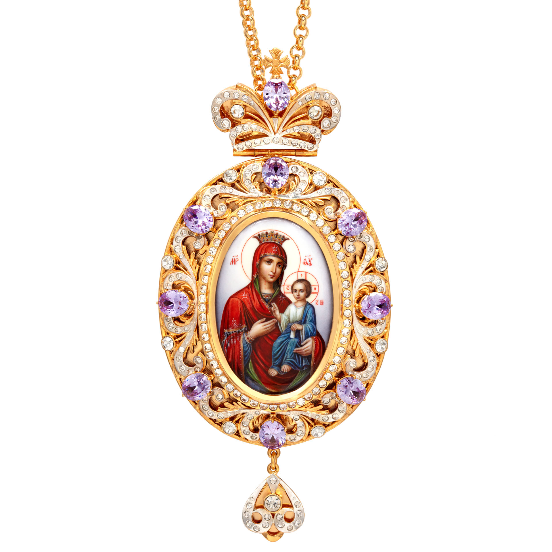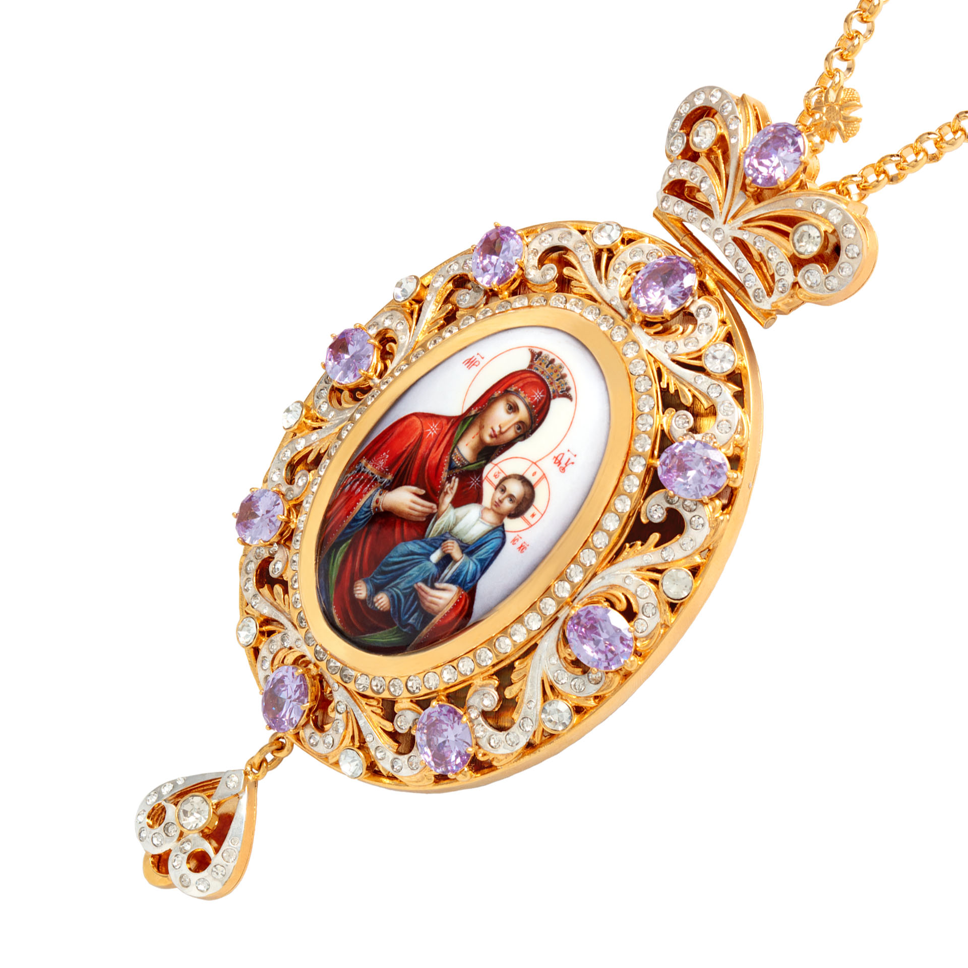 Панагия №94 / Фианиты деколь / золочение, серебрение / Иверская БМ