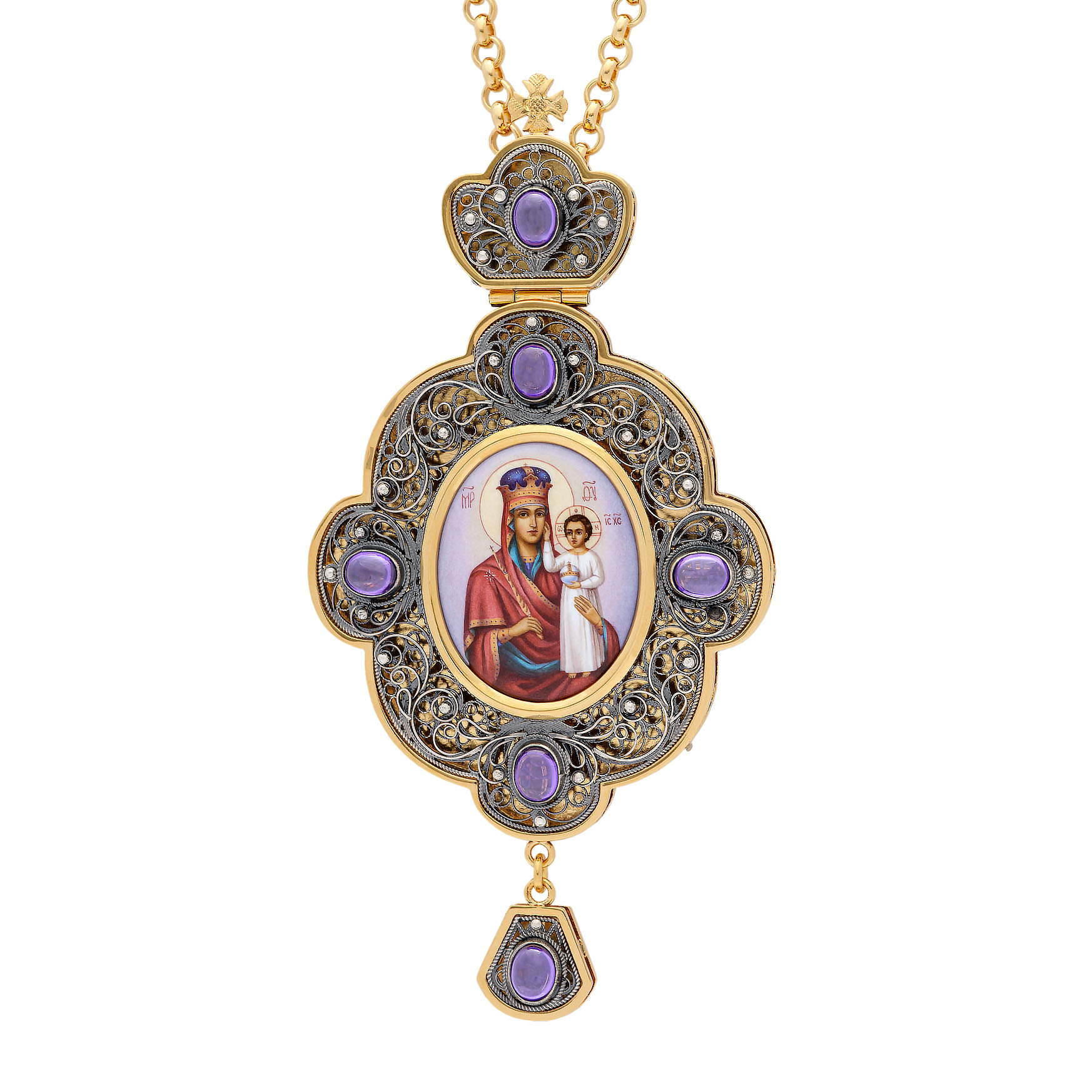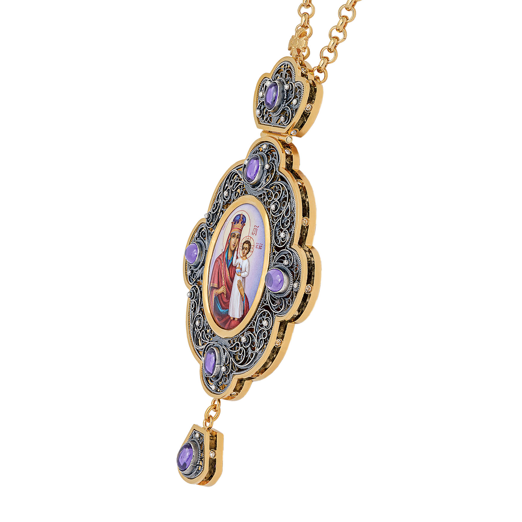 Панагия филигрань №0018 / Фианиты двойной рант финифть / золочение, серебрение / Призри на смирение