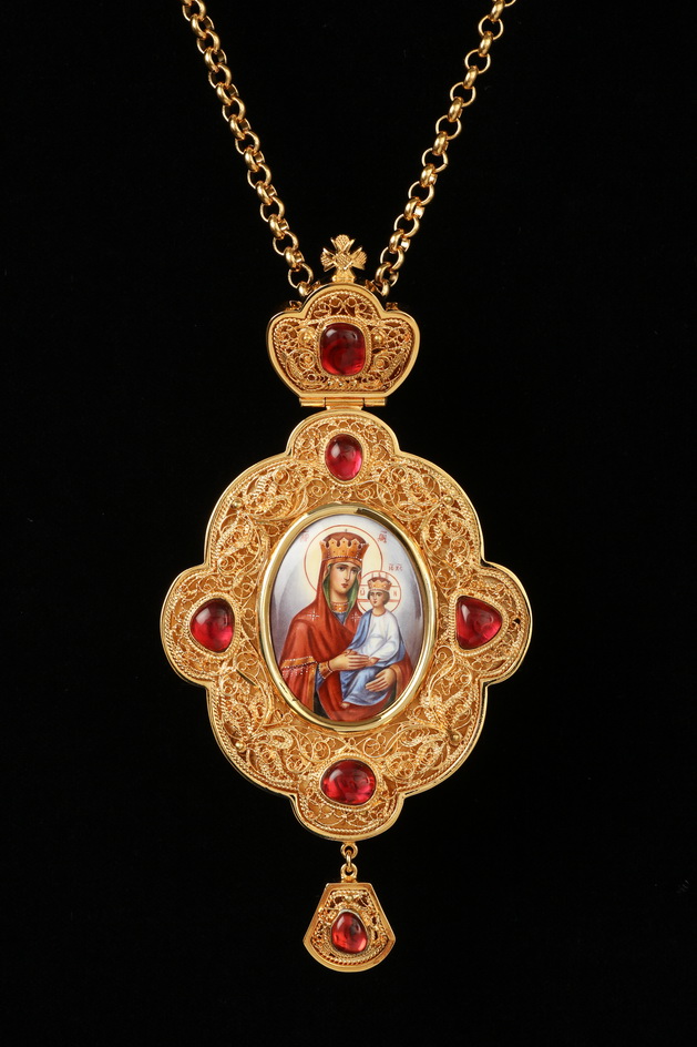 Панагия филигрань №0018 / Фианиты коробка финифть / золочение