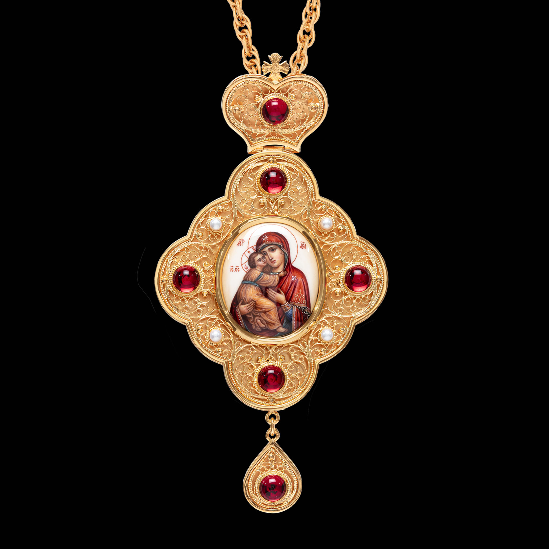 Панагия филигрань №0045 двойной рант финифть / золочение / Владимирская БМ