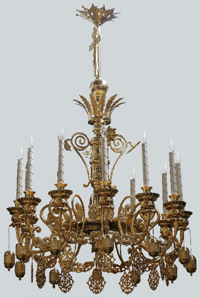 Стоимость паникадила с позолоченными свечами рассчитывается при заказе.