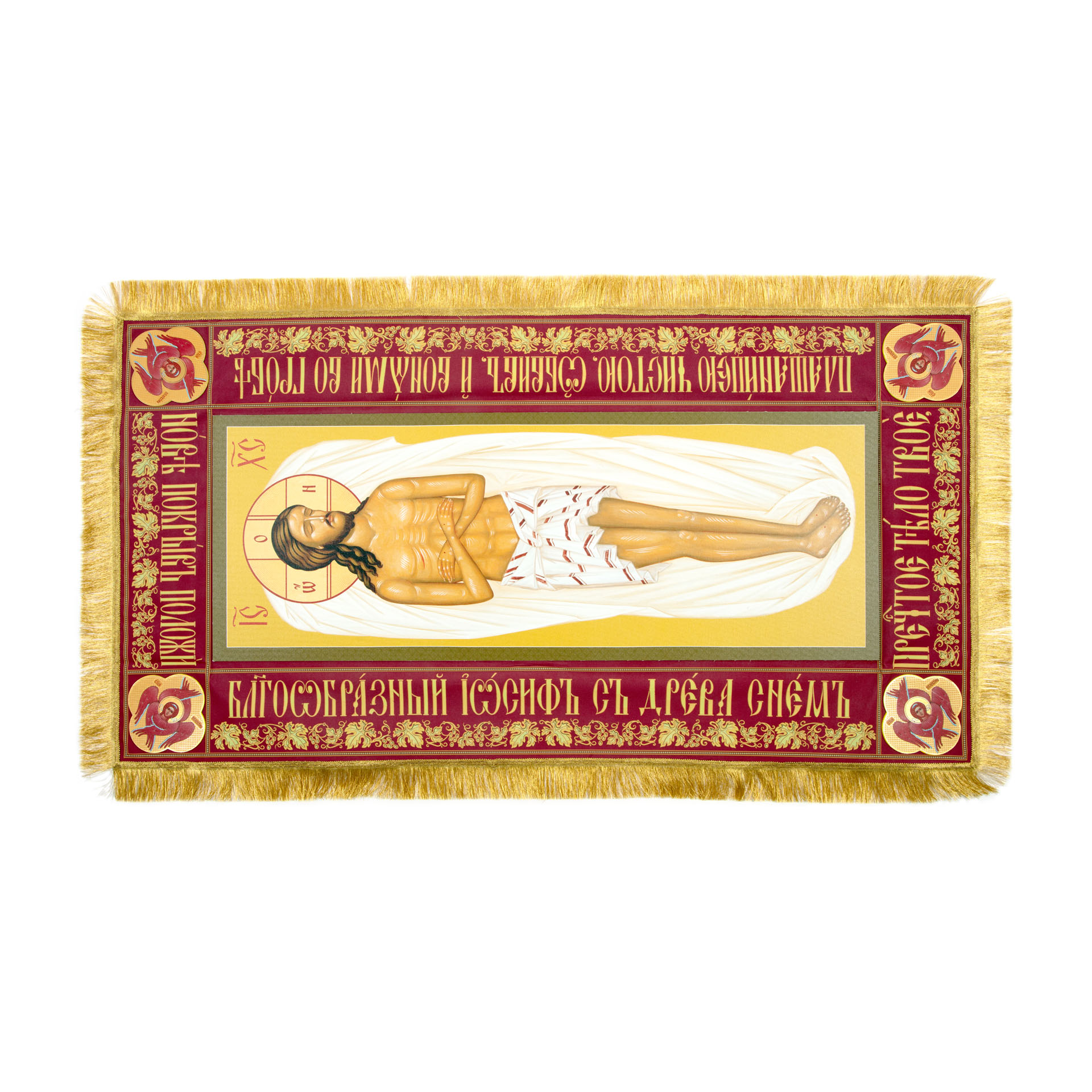 Плащаница выносная бархат,сублимационная печать,холст Спасителя №2 бордовый {{variant.name}}
