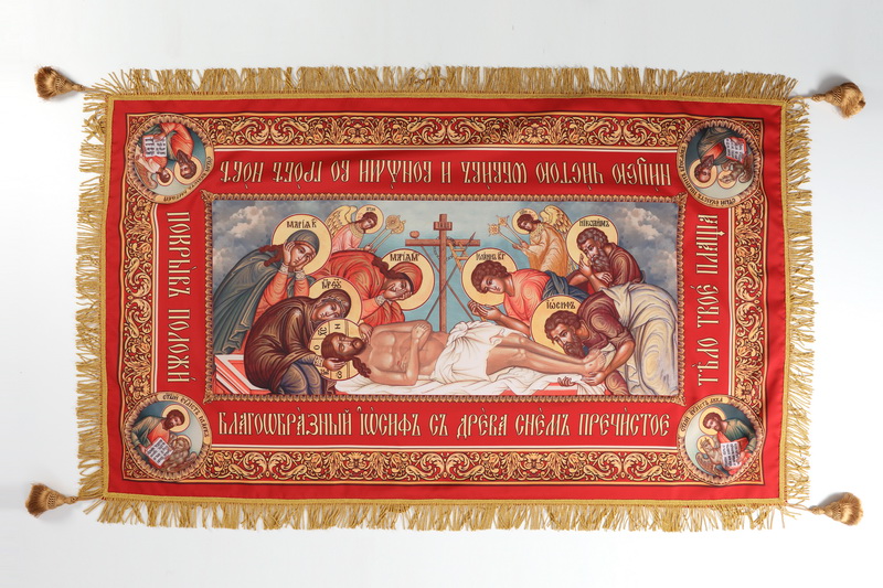 Плащаница выносная изготовлена из габардина, путем сублимационной печати по ткани.