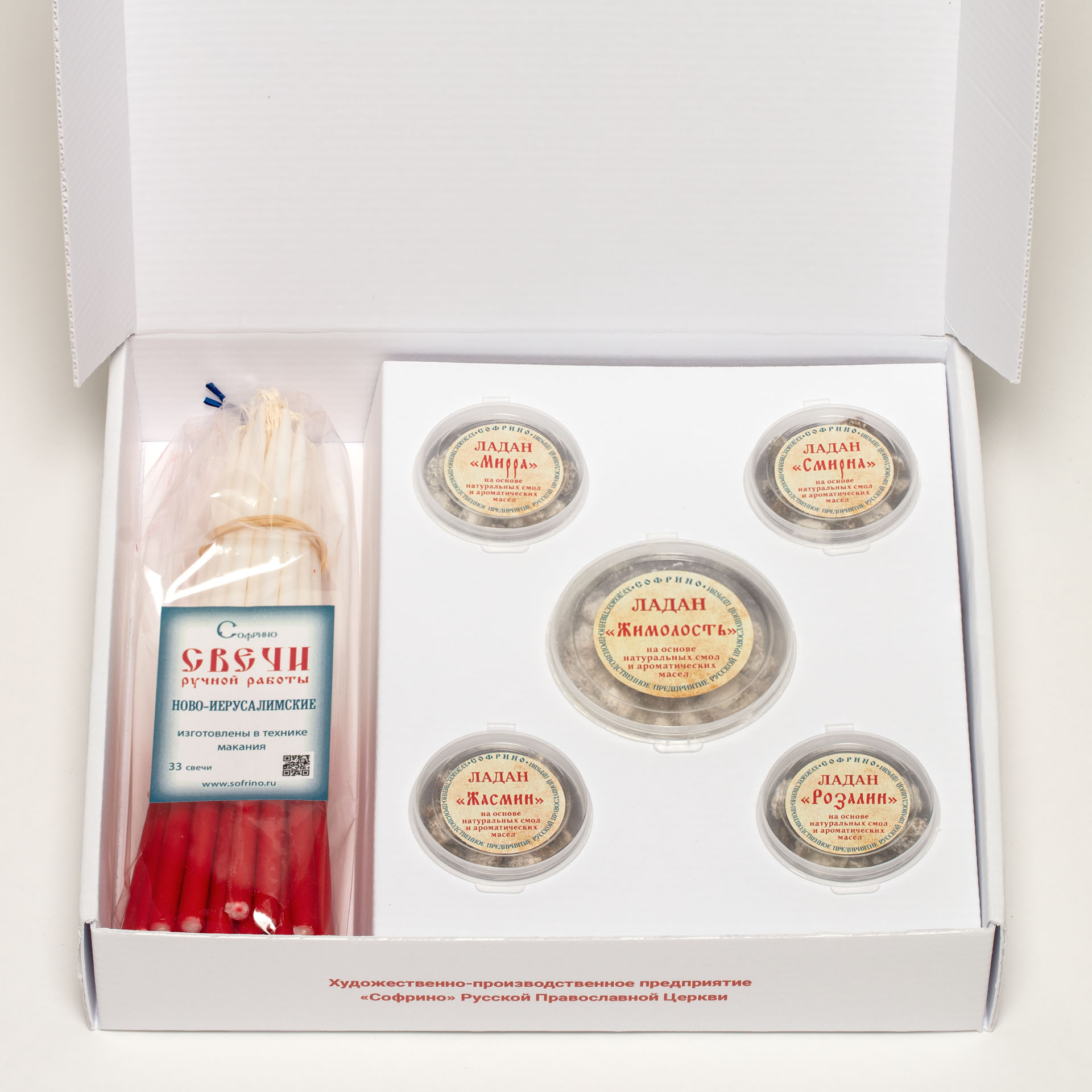 Подарочный набор №3 (ладан 1 уп х 55гр, 4 уп х 22гр, свечи иерусалимские - 33 шт)