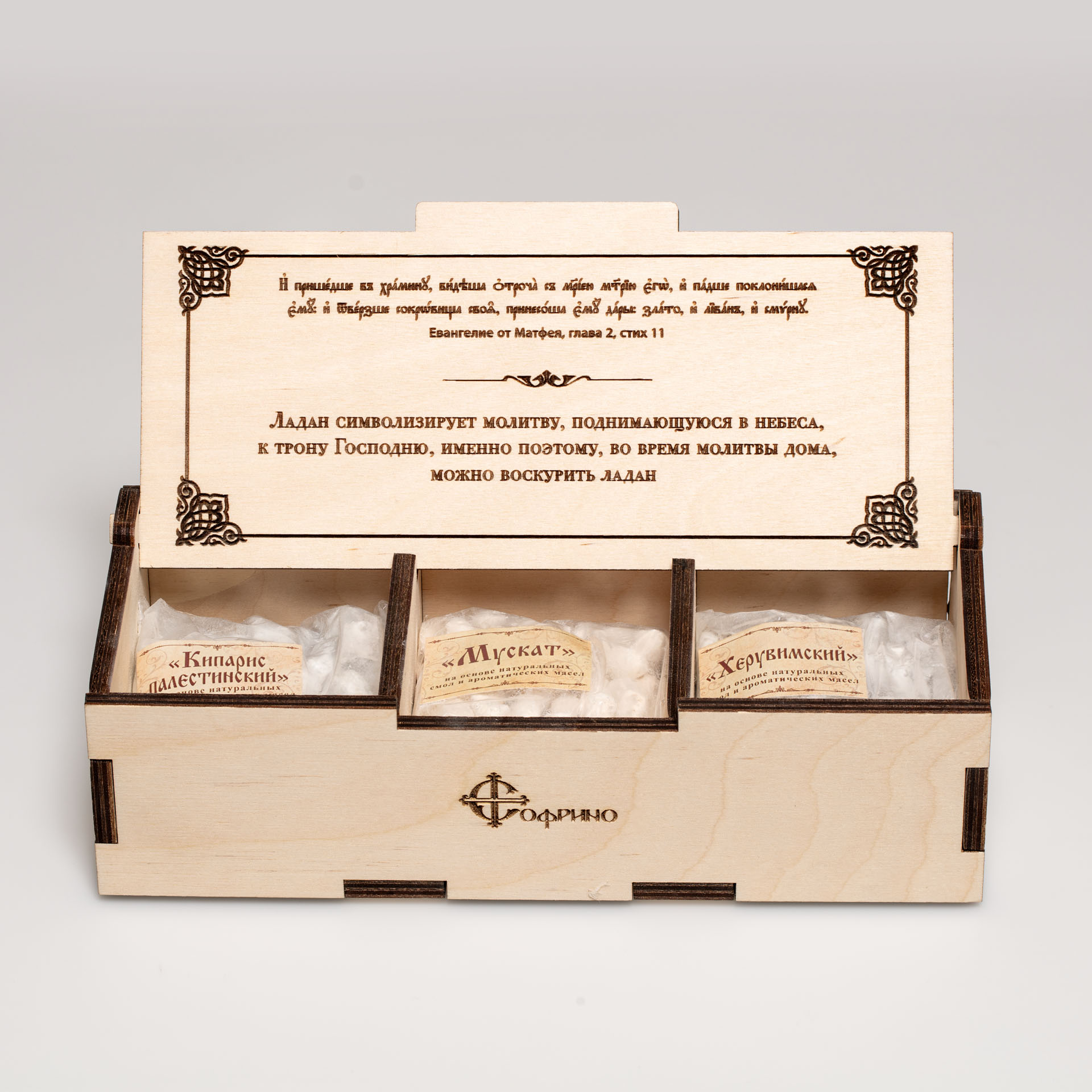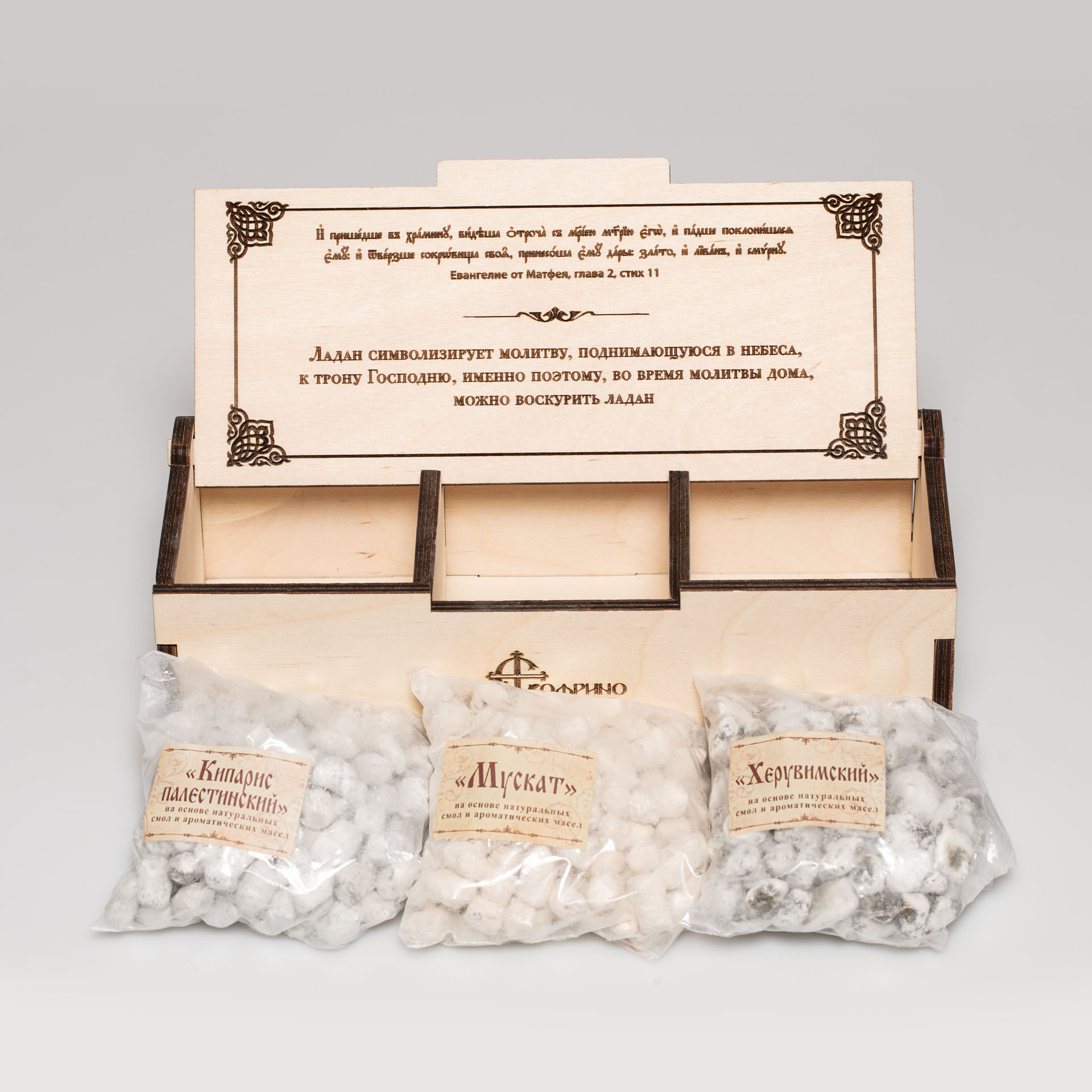 Подарочный набор №5 / 2 (шкатулка деревянная, ладан 3 уп х 100 гр)