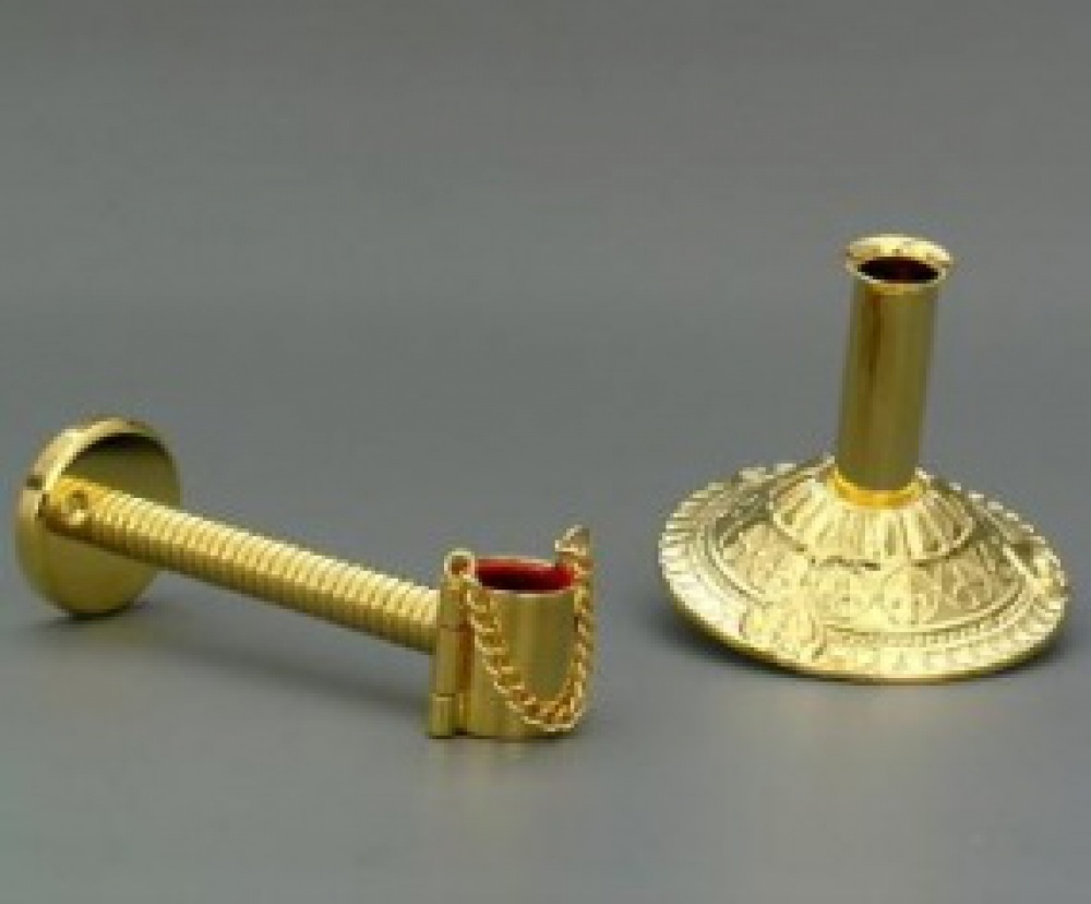 Отступ от стены - 140 мм, диаметр под посох - 33 мм.