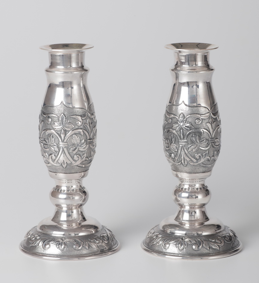 Подсвечник малый чеканка / 2 свечи / серебро (УИН)