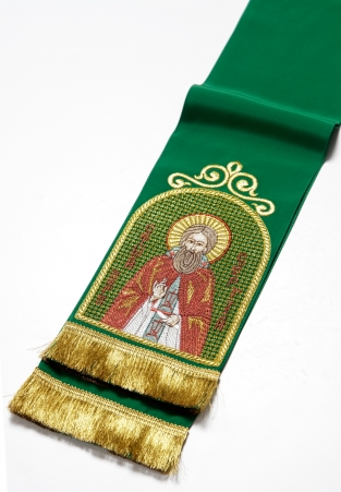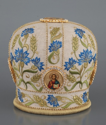Митра лен вышивка а / м 5юв.икон+стр.дорожки в футляре белый