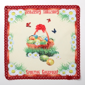Салфетка церковная пасхальная печать 44 х 120 с кружевом №1