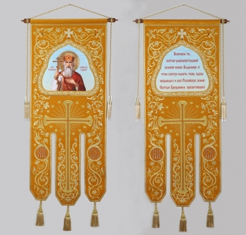 Хоругвь бархатная двухстороняя вышивка а / м (в комплекте древко и оглавие) Владимир равноап. кн. Киевский, желтый