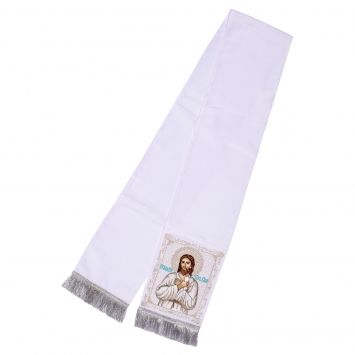 Закладка в Евангелие шелк, лик вышивка а\м №26 белый с серебром