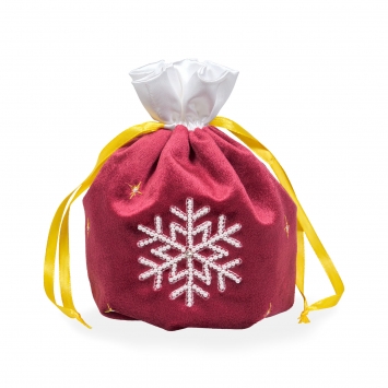Мешочек-шарик для рождественских сувениров с вышивкой а\м d13х11 "Снежинка" бордовый