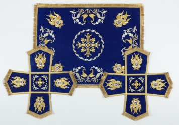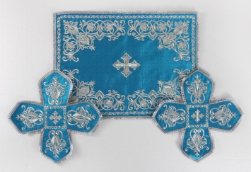 Салфетка церковная лен 220х150 + 6 салфеток 40х40 вышивка а\м