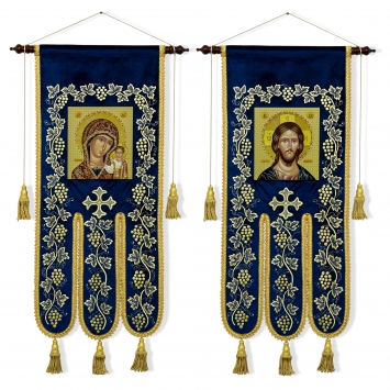 Хоругви на ткани бархат средние вышивка гладь, фото объемная печать (пара)