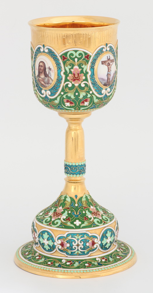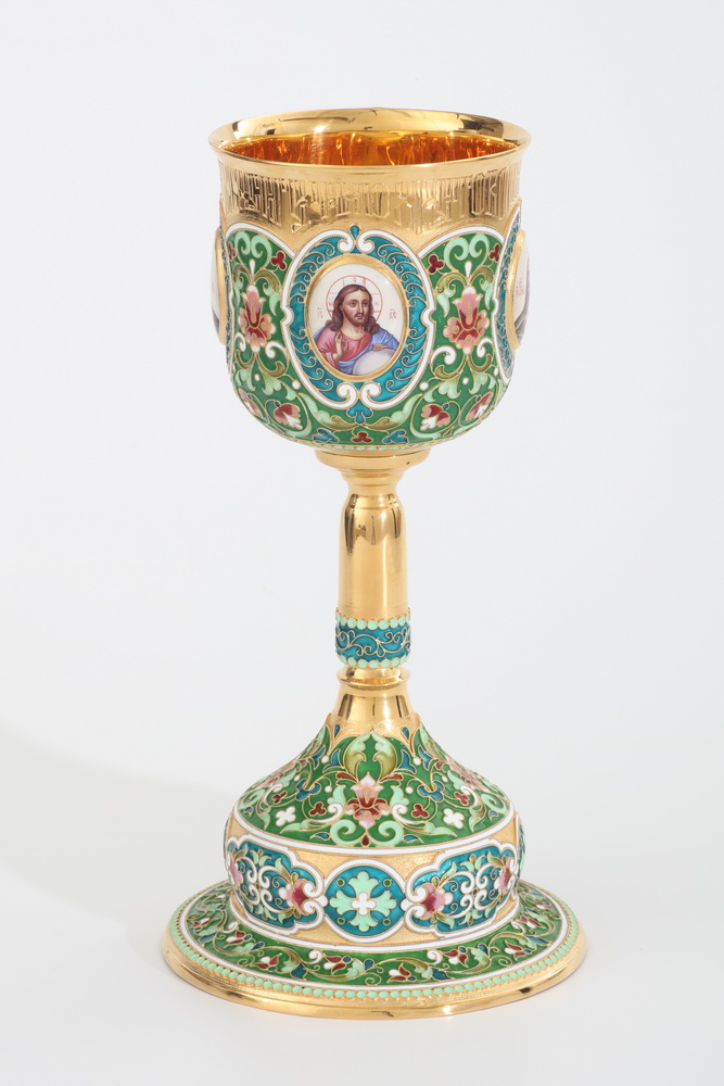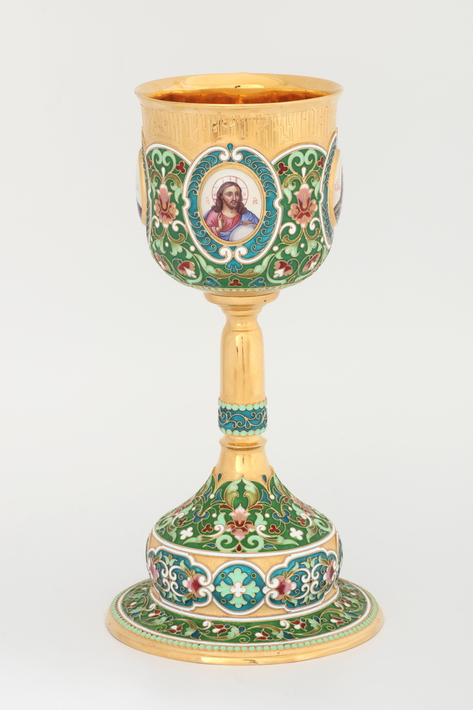 Потир 0.5л 4-финифти, филигрань, эмаль "№3" / золочение / серебро (УИН)