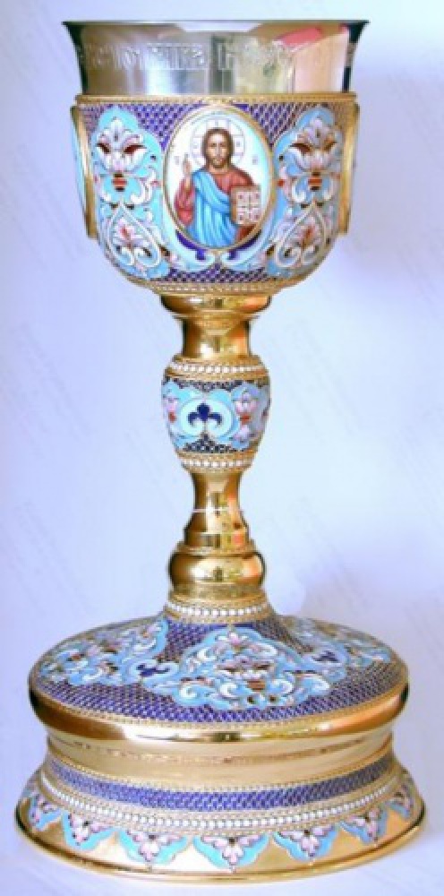 Потир 0.5л 4-финифти, филигрань, эмаль, роспись / золочение / серебро (УИН)