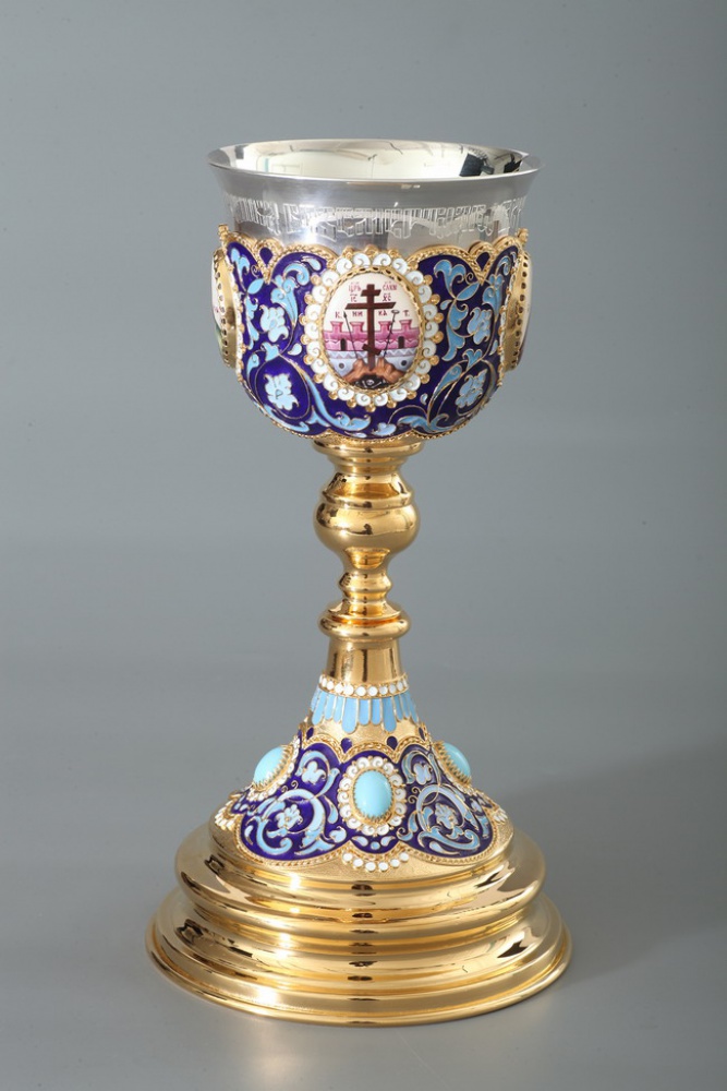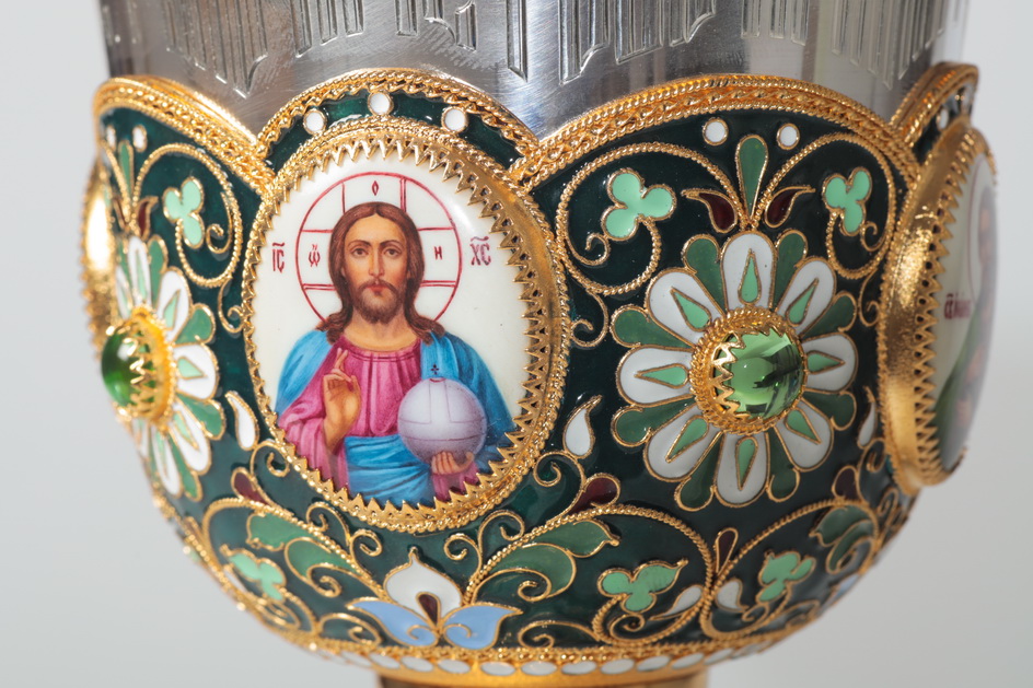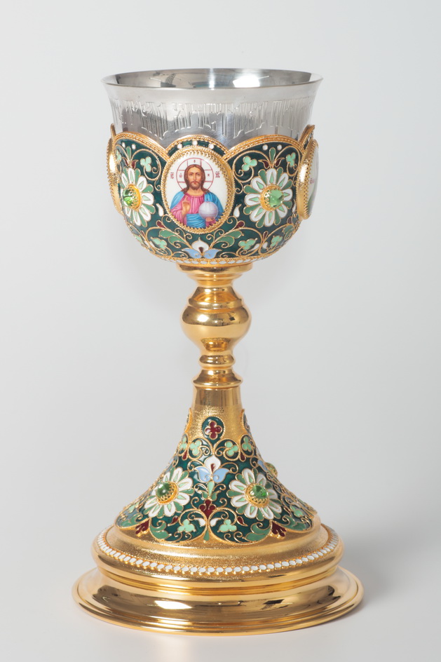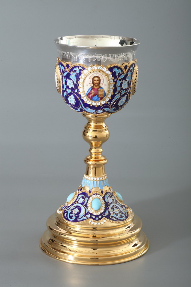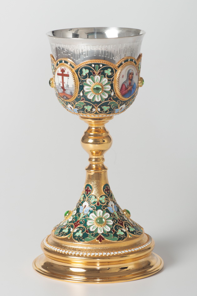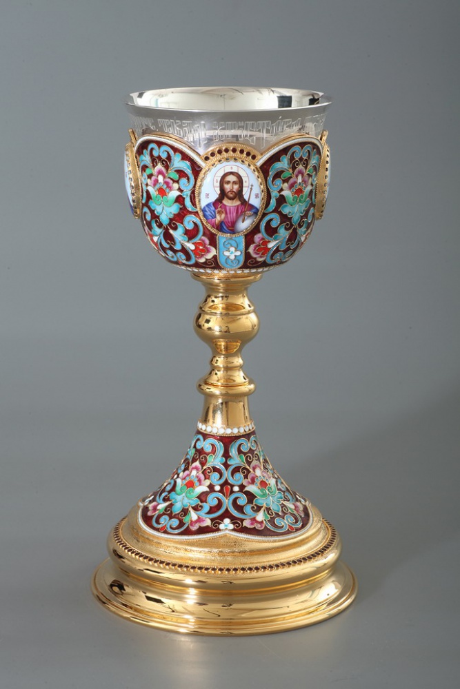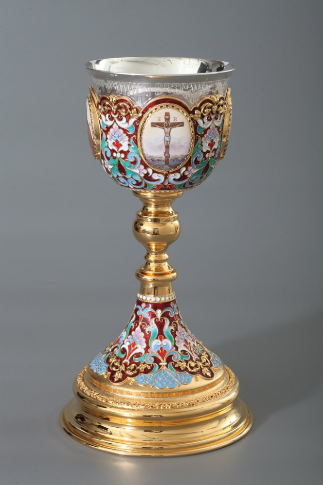 Потир 0.5л 4-финифти, филигрань, эмаль / золочение / серебряный стакан (УИН)