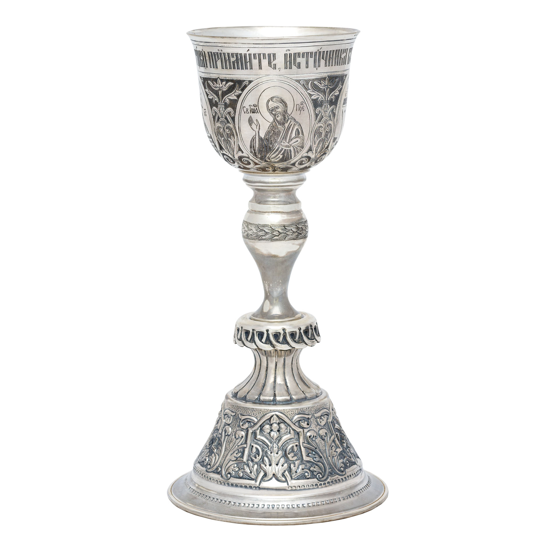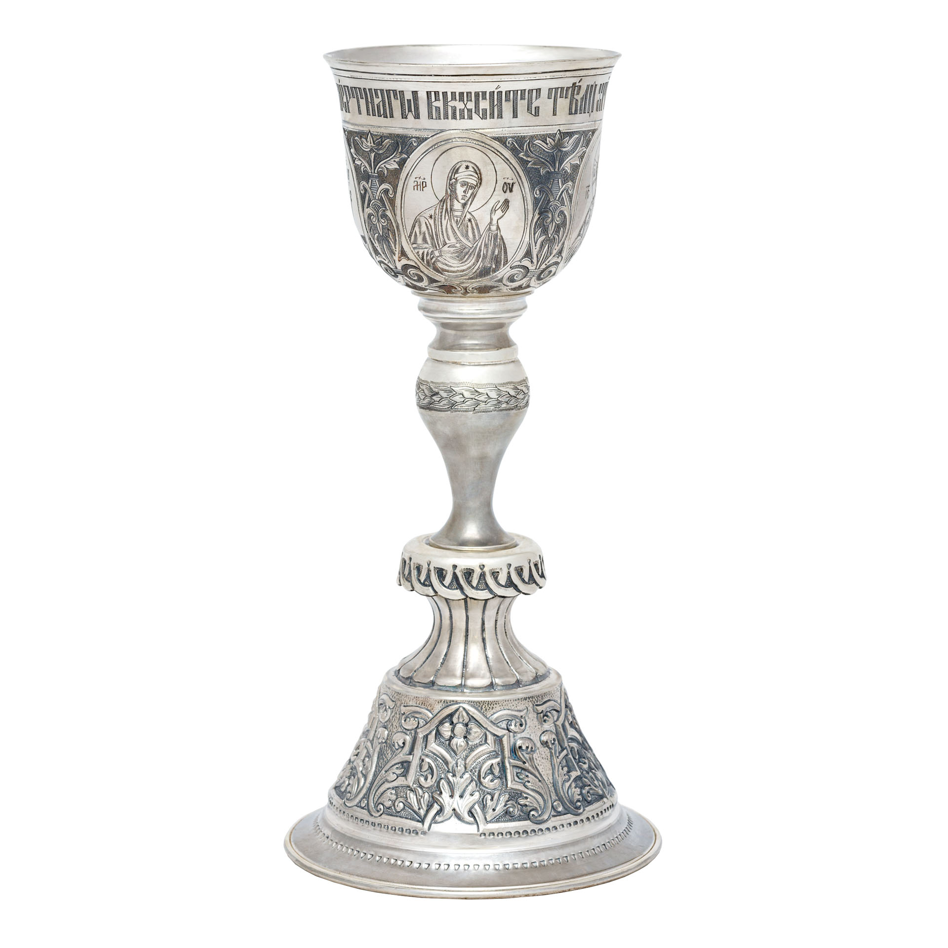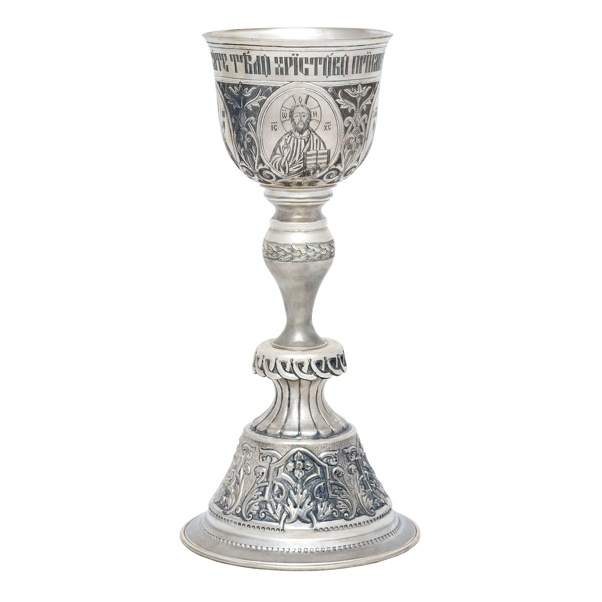Потир 0.5л ручная гравировка с 4мя-ликами, чеканка "№2" серебро (УИН)