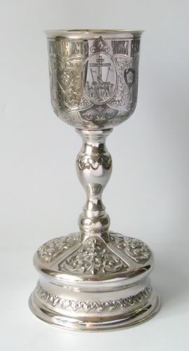 Потир 0.75л ручная гравировка, чеканка / поддон старого образца / серебро (УИН)