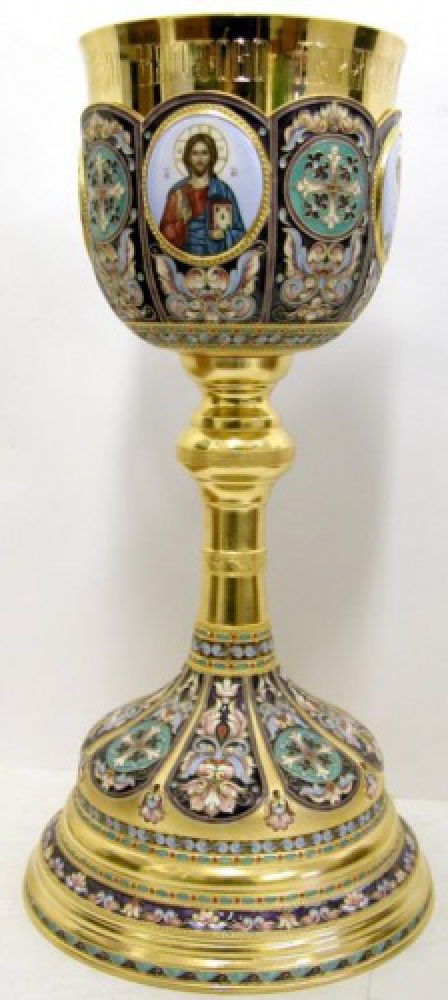 Потир 1.0л 4-финифти, филигрань, эмаль, роспись "песочные часы" / золочение / серебро (УИН)