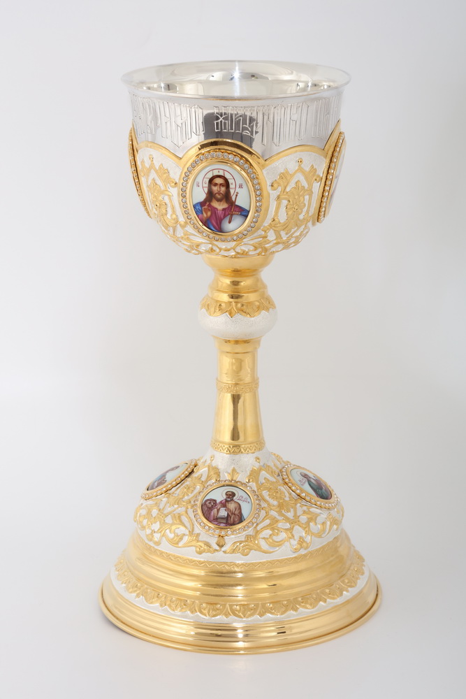 Потир 1.0л 8-финифтей, чеканка / поддон песочные часы / золочение / серебро (УИН)