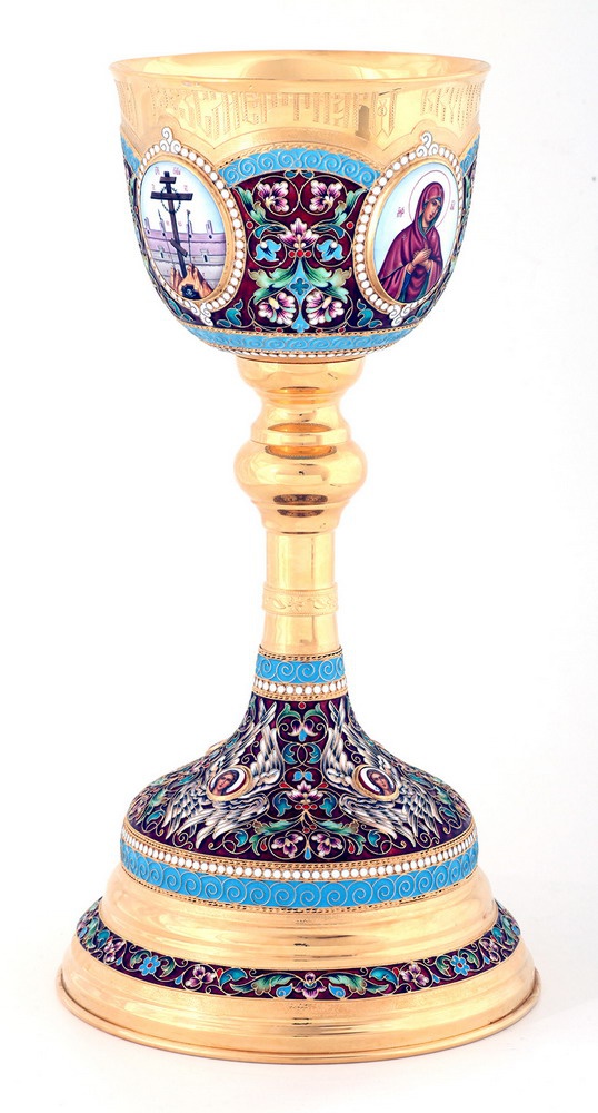 Потир 1.0л 8-финифтей, филигрань, эмаль, роспись "херувимы" / золочение / серебро (УИН)