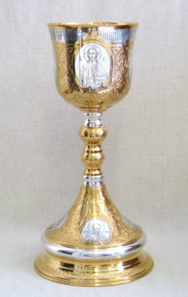 Потир 1.0л ручная гравировка с 8-ю ликами / золочение / серебро (УИН)
