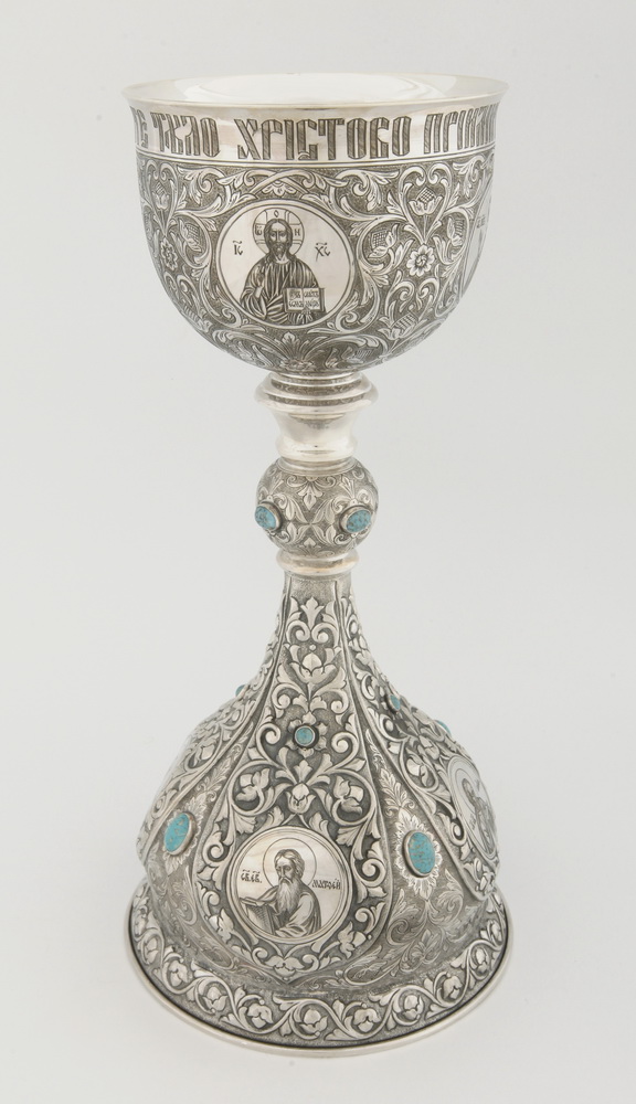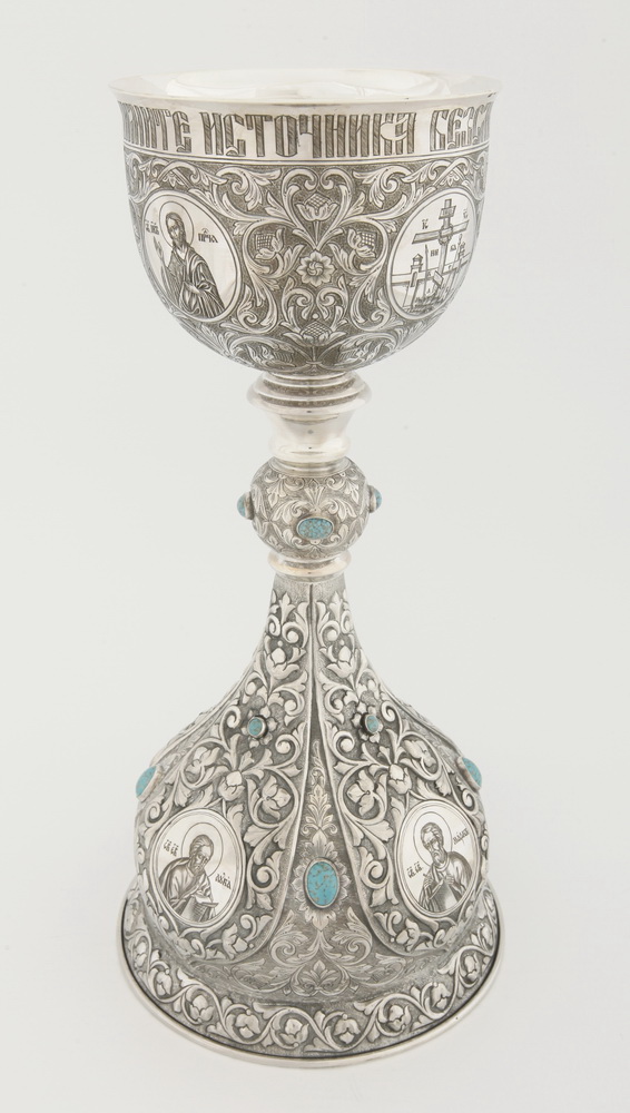 Потир 1.0л ручная гравировка с 8ю-ликами, чеканка "№7" серебро (УИН)