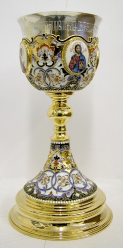 Потир 1.5л 4-финифти, филигрань, эмаль, роспись / золочение / серебряный стакан (УИН)