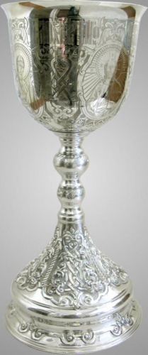 Потир 1.5л ручная гравировка с 4мя-ликами, чеканка, серебро (УИН)