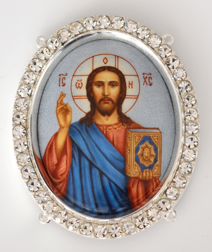 Рамка на митру финифть №16 / овал с короной / серебро (УИН)