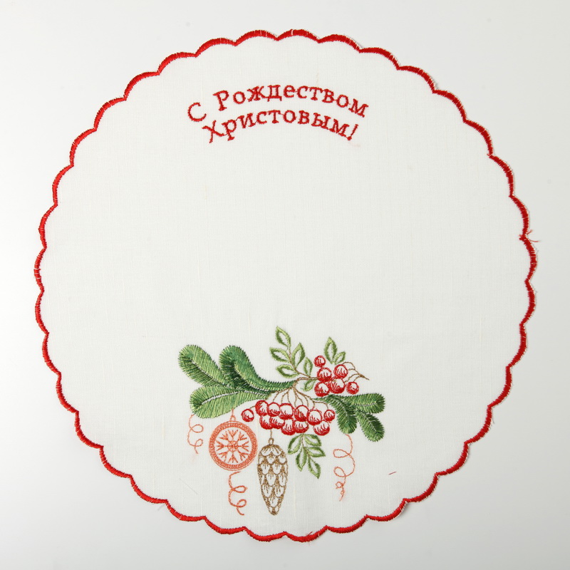 Салфетка церковная, рождественская, выполнена из хлопковой ткани, декорирована автоматической вышивкой. Цветовая палитра в ассортименте.