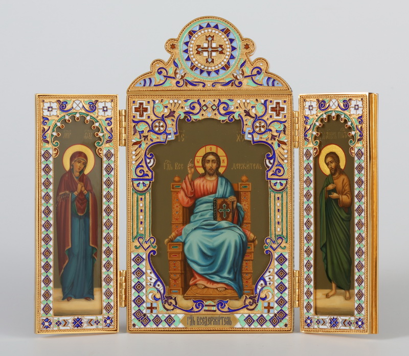 Складень ювелирный №26 серебро живопись, филигрань, эмаль / золочение / (УИН)