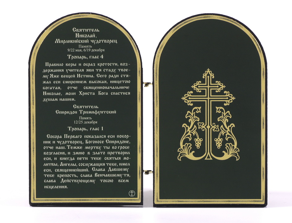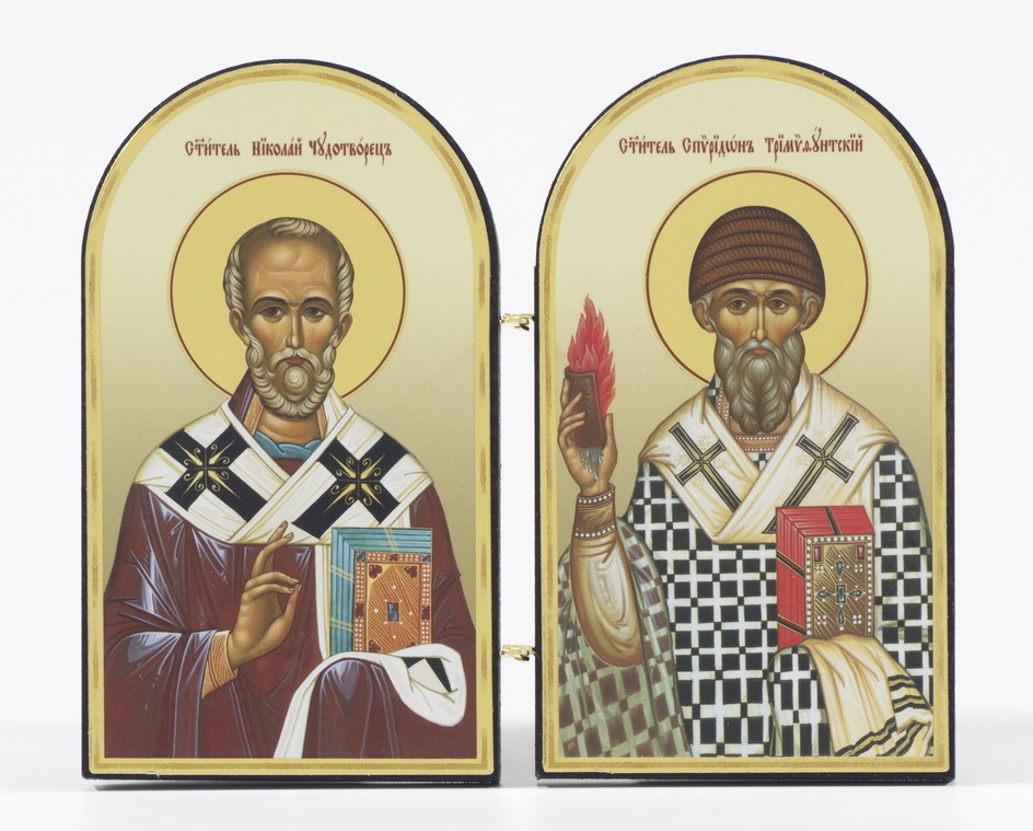 Складни деревянные 10х12 двухстворчатые, тиснение, арочные Спиридон Тримифунтский - Николай Чудотворец