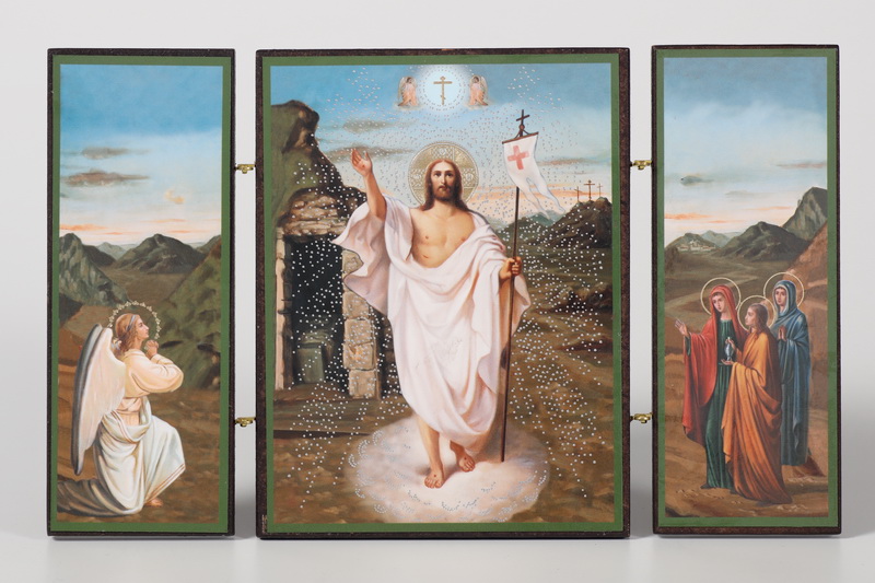 Складни деревянные 12х18 трехстворчатые, двойное тиснение, в упаковке Воскресение Христово