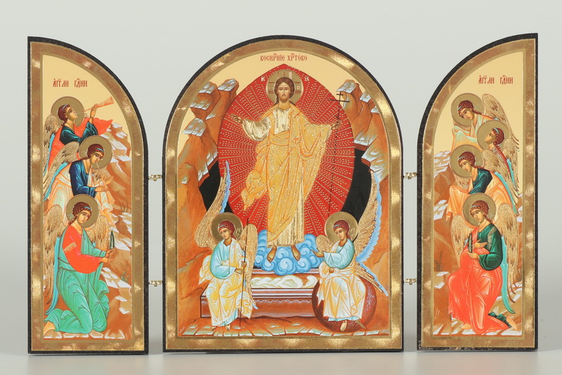 Складни деревянные 12х18 трехстворчатые, тиснение, арочные, в упаковке Воскресение Христово 27