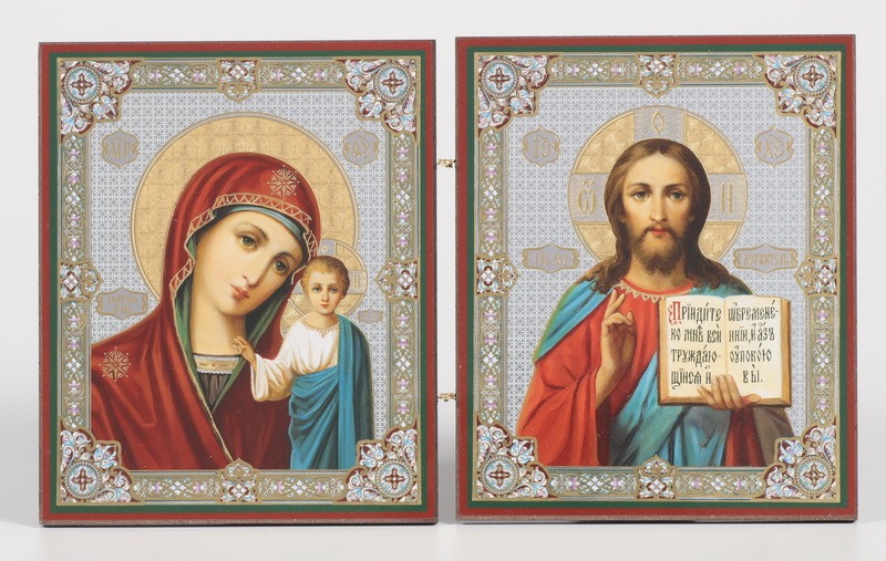 Складни деревянные 15х22 двухстворчатые, двойное тиснение Спаситель-Казанская БМ 14