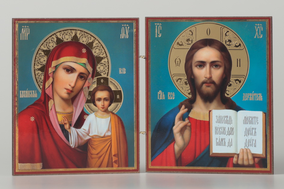 Складни деревянные 15х22 двухстворчатые, двойное тиснение Спаситель-Казанская БМ 34