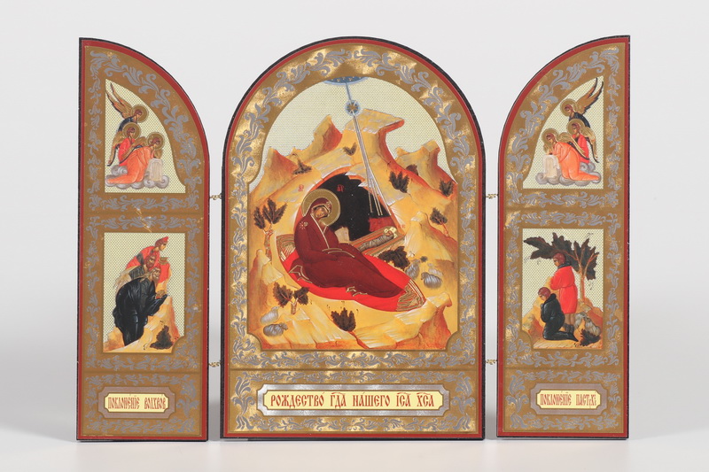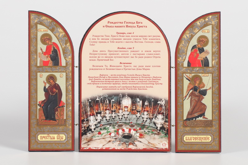 Складни деревянные 18х24 трехстворчатые, двойное тиснение, арочные, в упаковке Рождество Христово