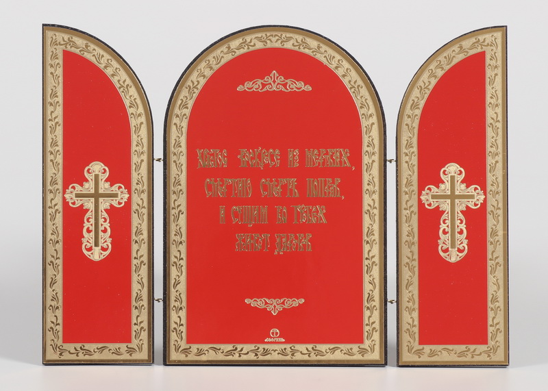 Складни деревянные 18х24 трехстворчатые, двойное тиснение, арочные, в упаковке Воскресение Христово 4