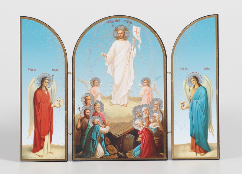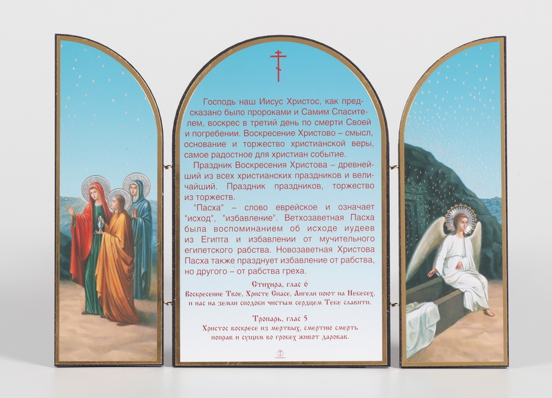 Складни деревянные 18х24 трехстворчатые, двойное тиснение, арочные, в упаковке Воскресение Христово