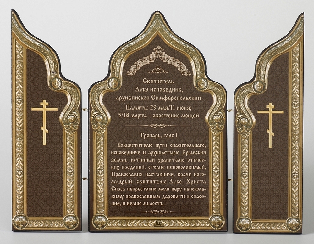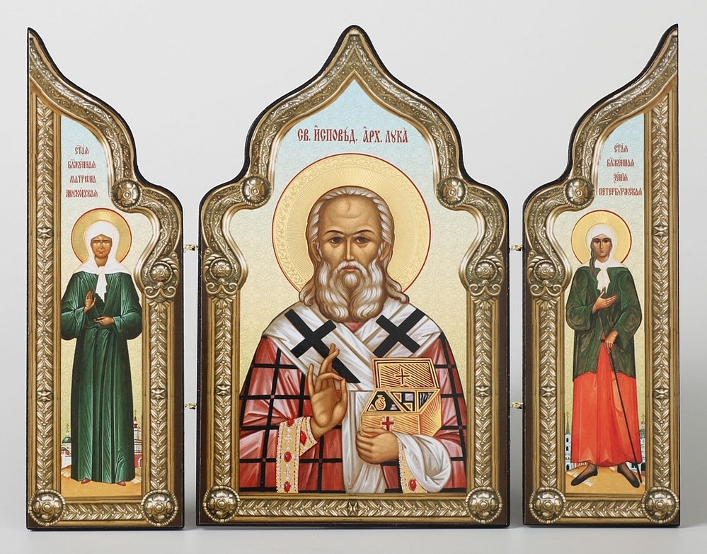 Складни деревянные 18х24 трехстворчатые, тиснение, арочные, фигурные, в упаковке Лука Войно-Ясенец. - Матрона -Ксения Петербургская